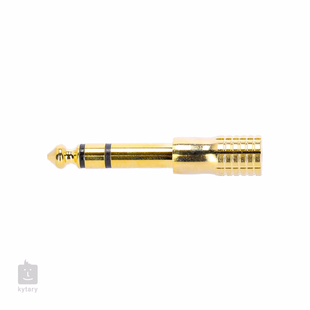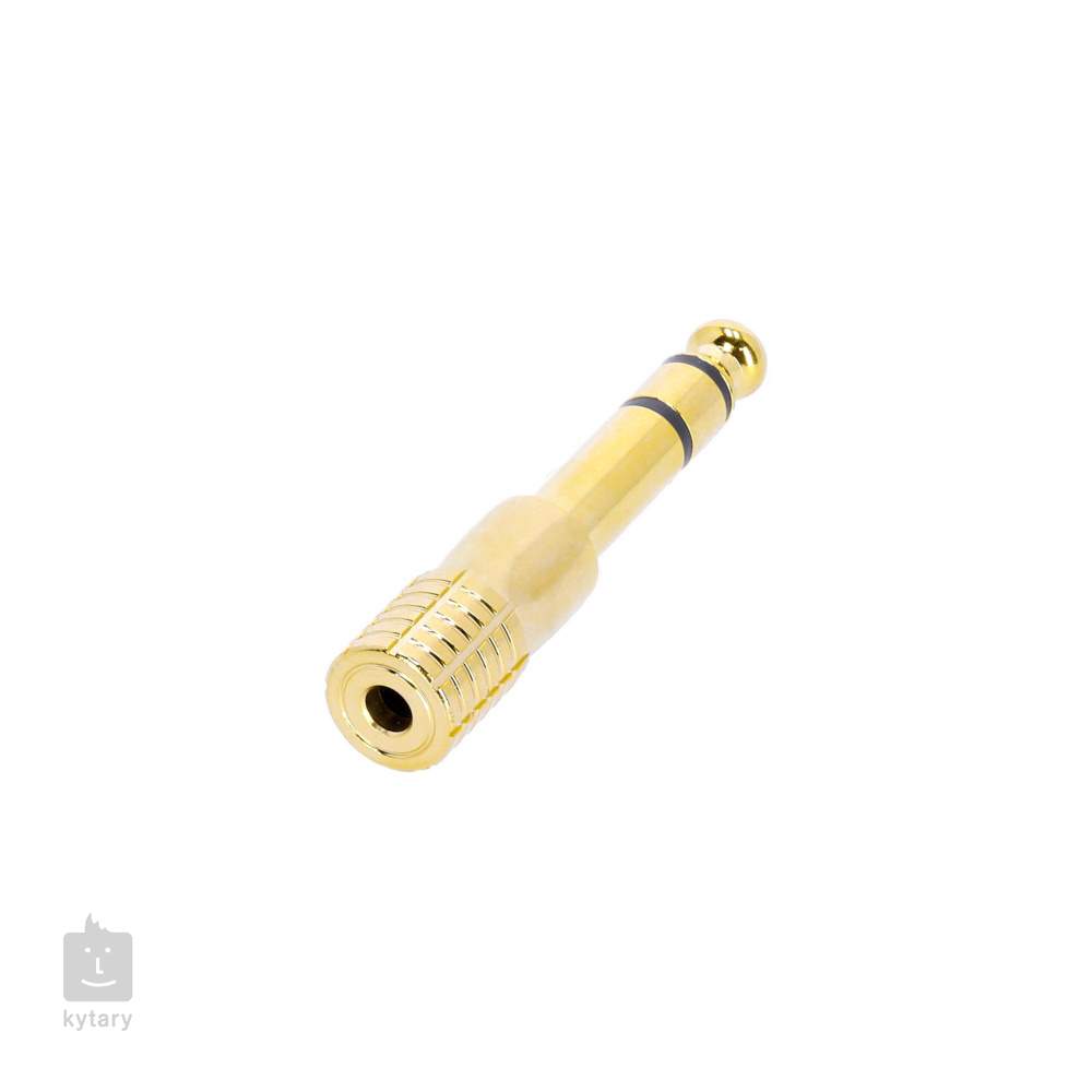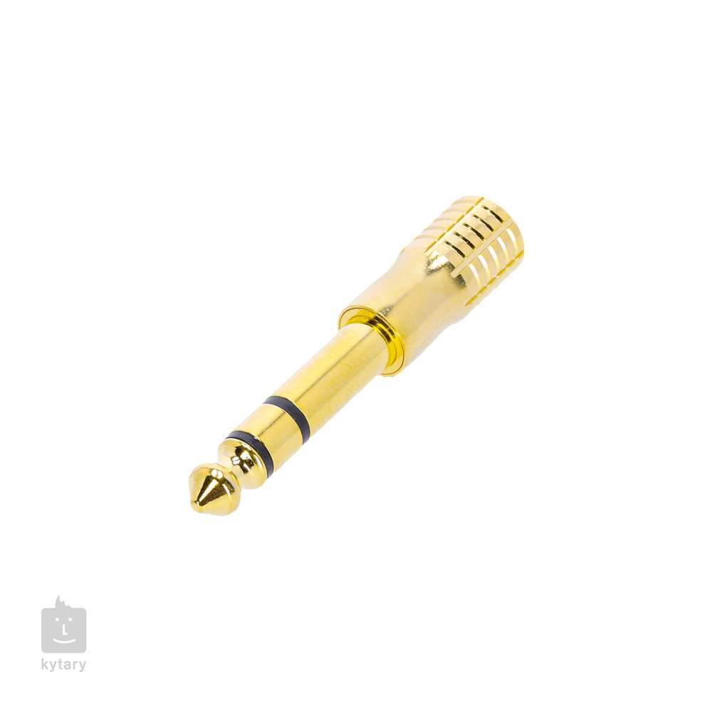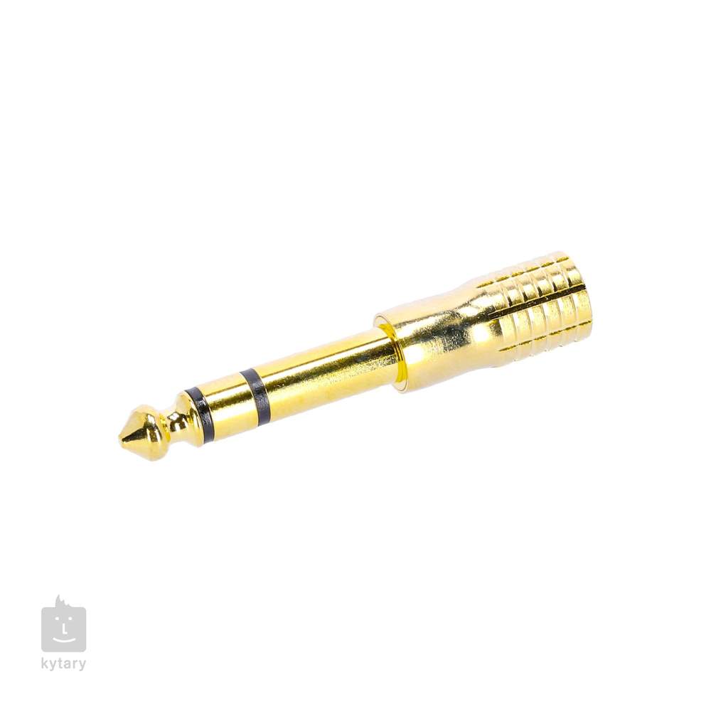 Stereofónna pozlátená redukcia z konektora Jack 3,5 mm samica na konektor Jack 6,3 mm samec.