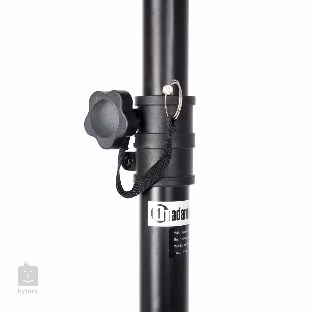Svetelný stojan Adam Hall SLTS 017E je určený na zavesenie vašich svetiel. Je to len stojan bez priečnej tyče (k dispozícii na zakúpenie tu). Stojan je vyrobený z odolnej ocele a má nosnosť až 45 kg. Samozrejmosťou je možnosť nastavenia výšky od 1700 do 3500 mm.