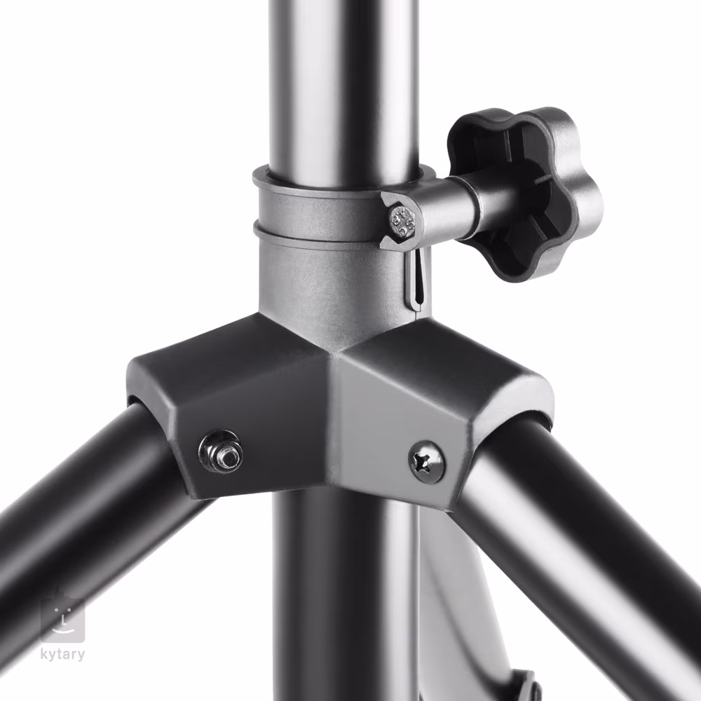 Robustný stojan na reproduktory, vhodný pre väčšinu reproduktorových skríň na trhu. Pevná hliníková konštrukcia doplnená kvalitnými plastovými prvkami unesie zaťaženie až do 25 kg. Kompaktné rozmery zloženého stojana a nízka hmotnosť umožňujú jeho jednoduchú prepravu medzi produkciami. Súčasťou balenia je bezpečnostný kolík s nylonovým popruhom.