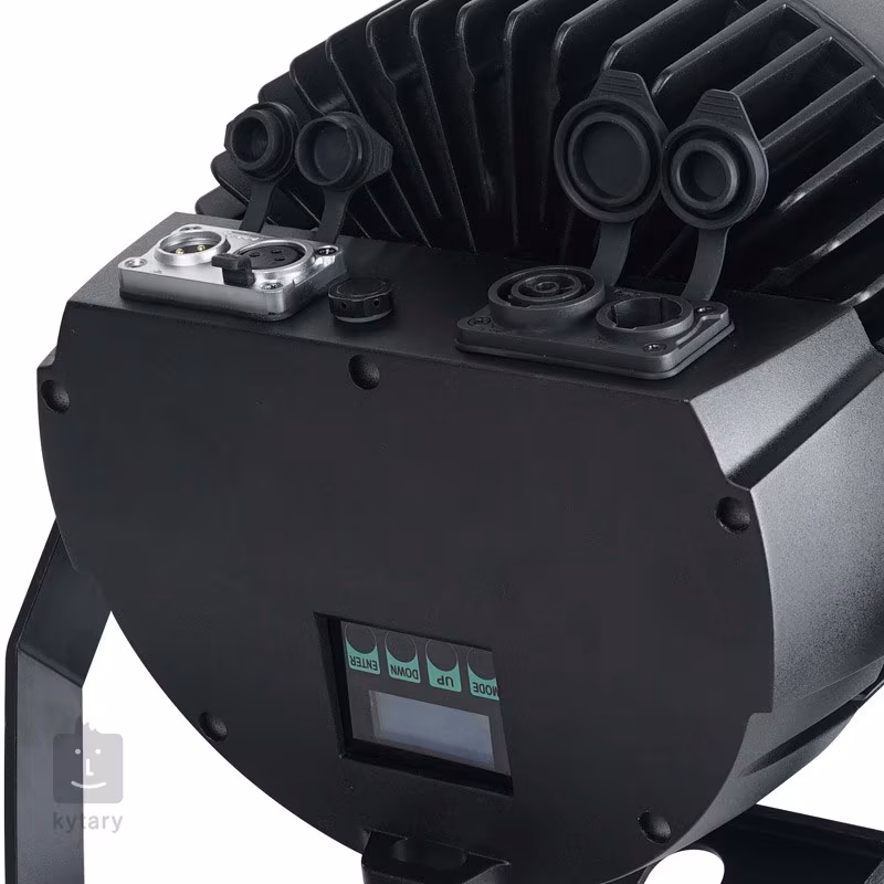 Na ovládanie môžete použiť buď štandardný protokol DMX512, režim automatického programovania, farebné makrá alebo protokol RDM. Na manuálne nastavenie slúži prehľadný ovládací panel s displejom a tlačidlami. Reflektor má robustnú kovovú konštrukciu a vodotesné konektory - 3-pinové konektory DMX I/O a napájacie konektory.