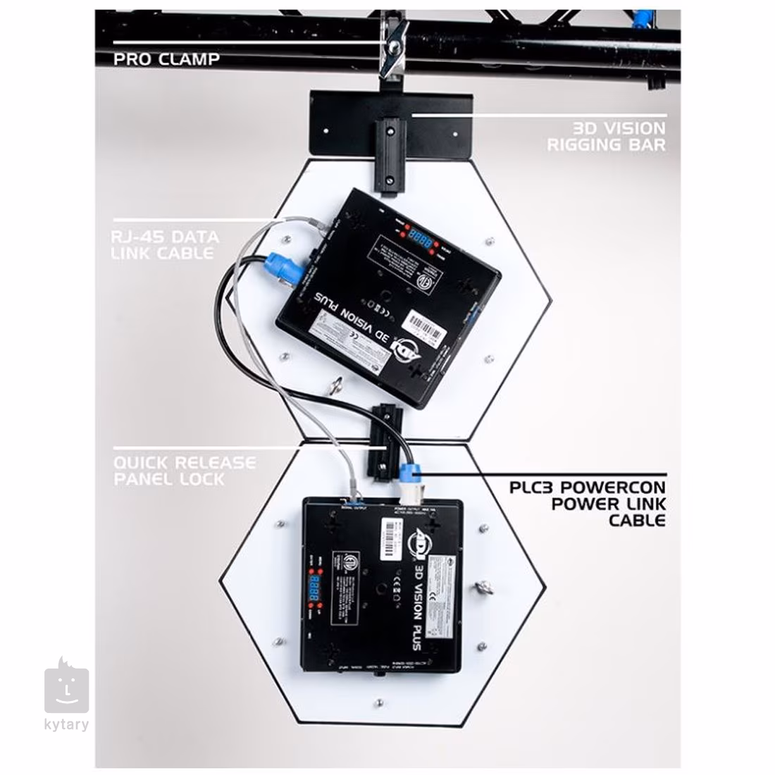 3D Vision Plus od spoločnosti ADJ je šesťuholníkový LED panel vytvárajúci jedinečné 3D efekty, ktoré najlepšie vyniknú pri spojení viacerých jednotiek. Jeho svetelný zdroj pozostáva zo 72 RGB (3v1) LED diód, ktoré umožňujú vytvárať rôzne farebné odtiene. Prednú časť každého panelu pokrýva matný akrylový panel, ktorý rozptyľuje svetlo zo základných LED diód pod uhlom 180°.