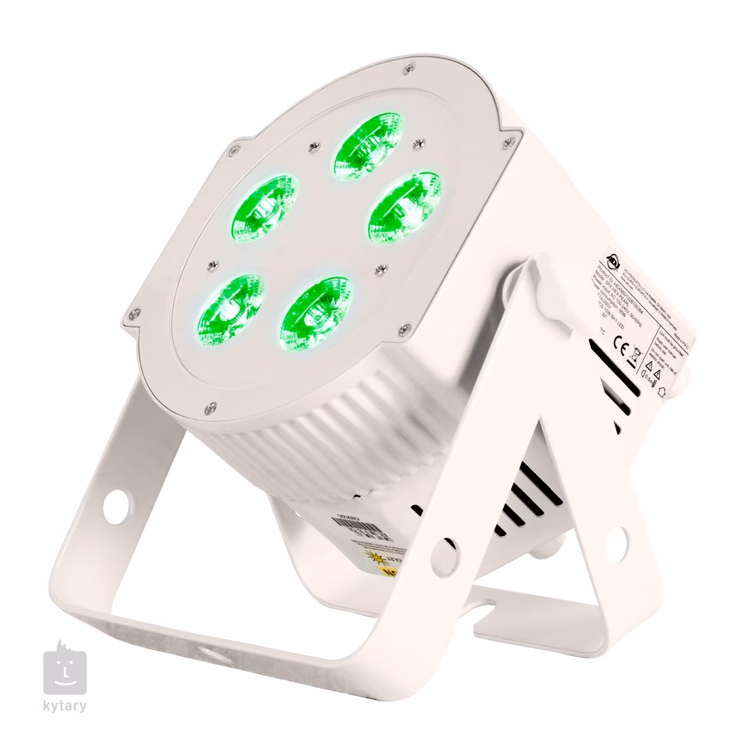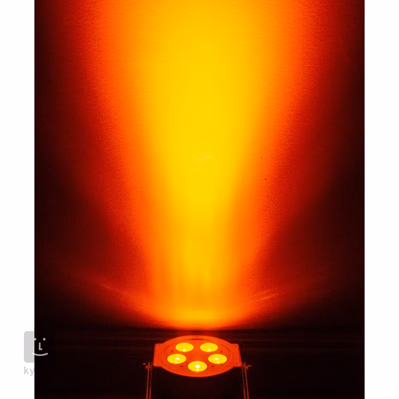 Reflektor je vybavený piatimi 12W LED diódami RGBWA + UV (6v1), ktoré vydržia až 50 000 hodín a poskytujú takmer nekonečné množstvo farebných možností. Okrem miešania farieb môžete použiť aj 63 prednastavených farebných makier. Svietidlo je tiež vybavené pokročilým viacrežimovým stmievačom a stroboskopickým efektom.