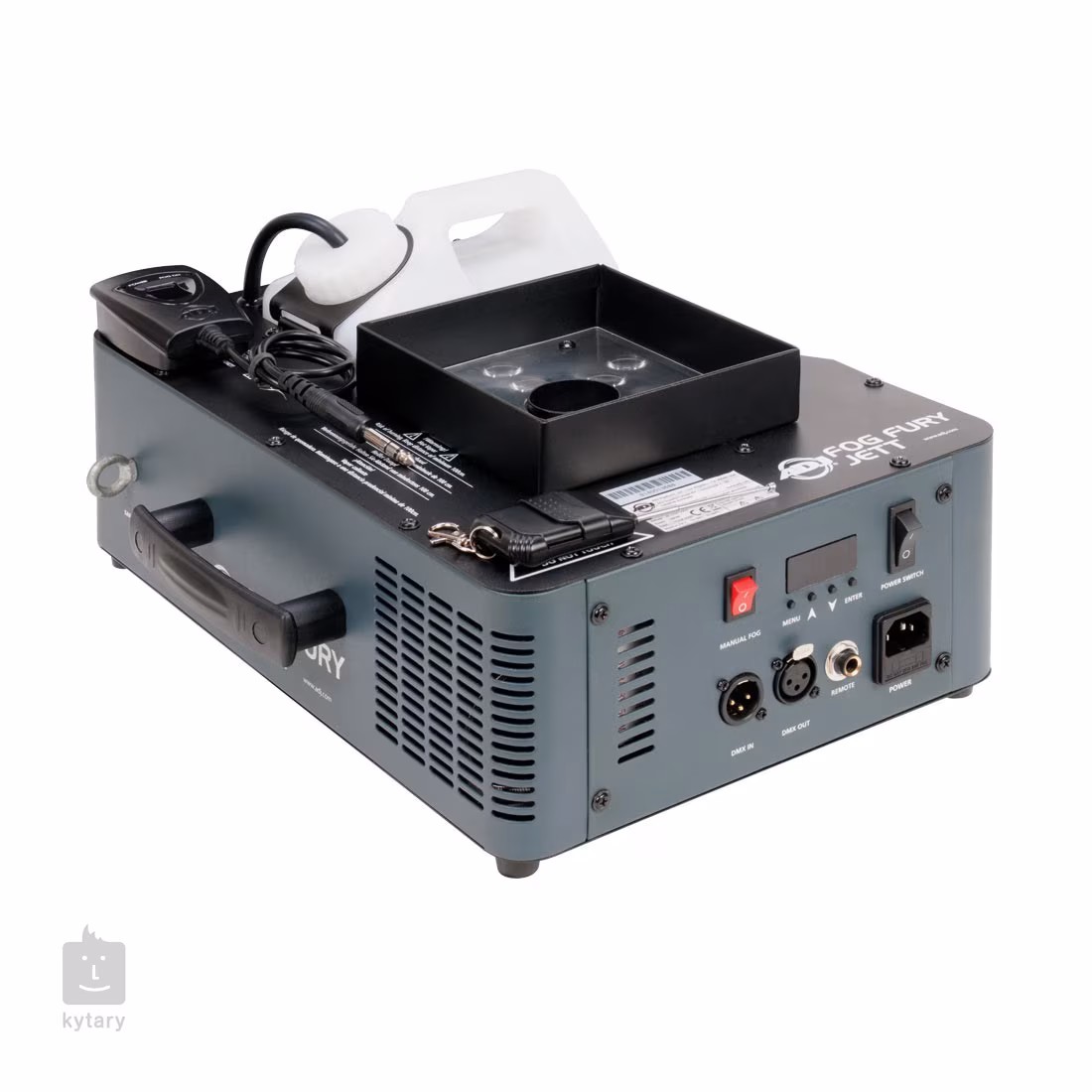 Fog Fury Jett od spoločnosti ADJ je LED podsvietený výrobník hmly, ktorý dodáva hmle farbu vďaka dvanástim 3W LED RGBA (3x červená, 3x zelená, 3x modrá, 3x jantárová). Zariadenie možno umiestniť do rôznych smerov, aby sa využila horizontálna a vertikálna výroba hmly.