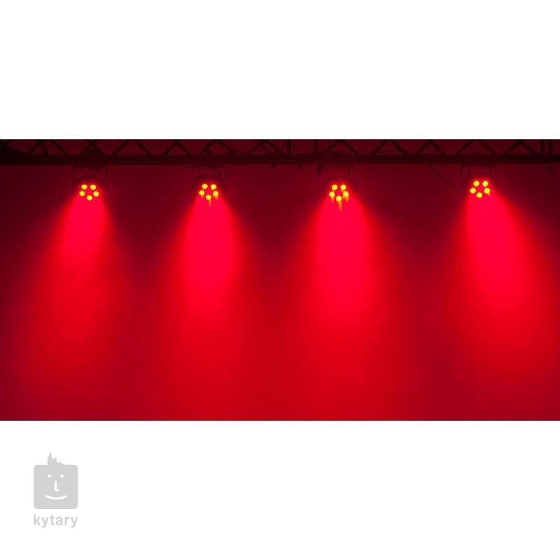 Reflektor je vybavený piatimi 6W LED diódami RGBWA + UV (6v1), ktoré vydržia až 50 000 hodín a poskytujú takmer nekonečnú škálu farebných možností vrátane výraznej ružovej, limetkovo zelenej alebo žiarivo modrej. Okrem miešania farieb pomocou technológie Slow Colour Mixing, ktorá umožňuje plynulé prepínanie medzi farbami, môžete využiť aj 63 prednastavených farebných makier. Svietidlo je vybavené aj elektronickým stmievačom a stroboskopickým efektom.