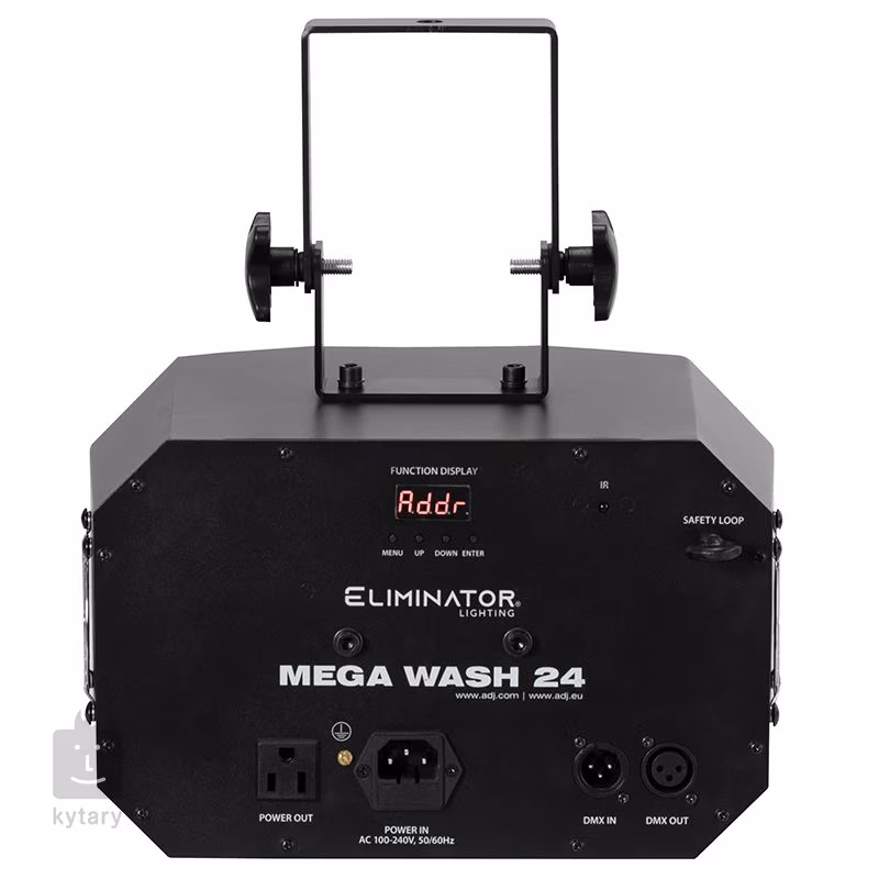 Na ovládanie svietidla môžete použiť štandardný protokol DMX512 s 3, 6, 10 alebo 40 kanálmi. K dispozícii sú aj automatické alebo zvukom riadené programy a režim primárneho/sekundárneho osvetlenia. Súčasťou je aj stroboskopický efekt s nastaviteľnou rýchlosťou a elektronický stmievač. Zariadenie je vybavené bezpečnostnou slučkou a dvoma chladiacimi ventilátormi, ktoré zabezpečujú spoľahlivý výkon. Vďaka ľahkej a kompaktnej konštrukcii sa zariadenie Mega Wash 24 ľahko integruje do akéhokoľvek systému osvetlenia, či už ide o prenosné alebo trvalé aplikácie. Súčasťou balenia je bezdrôtový infračervený diaľkový ovládač, napájací kábel IEC a montážna konzola na inštaláciu na konštrukciu javiska.