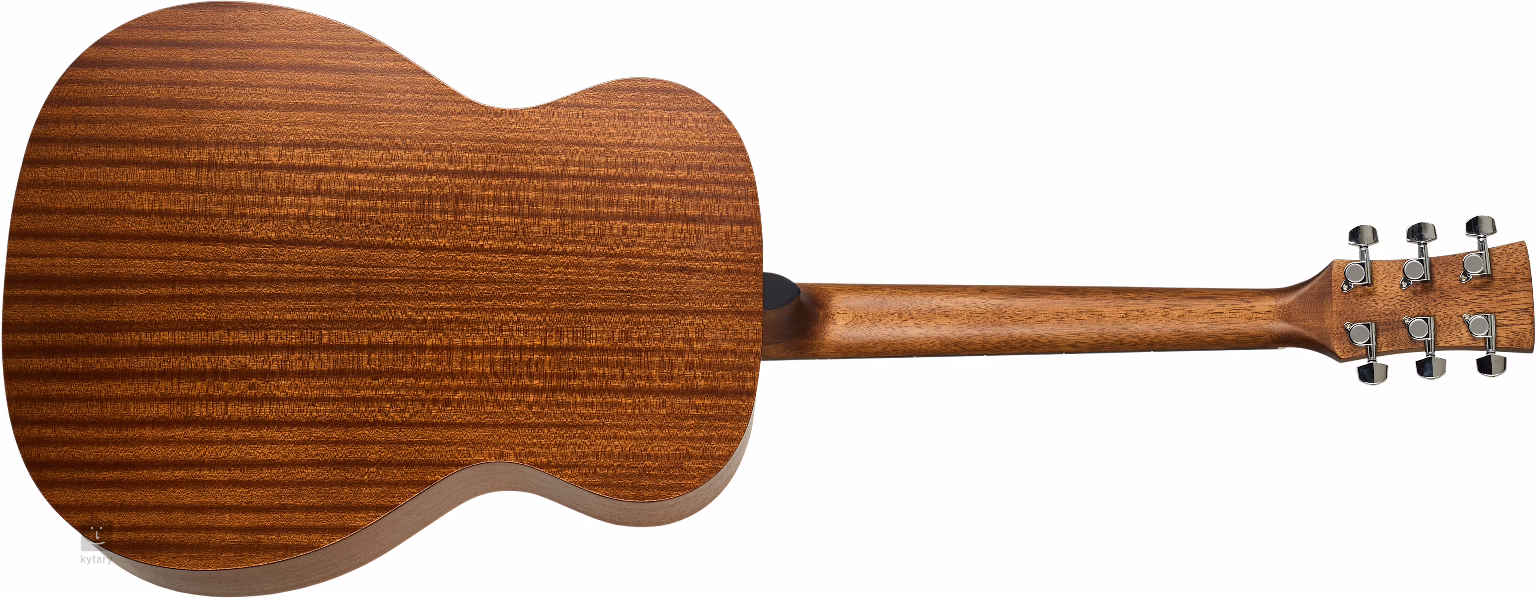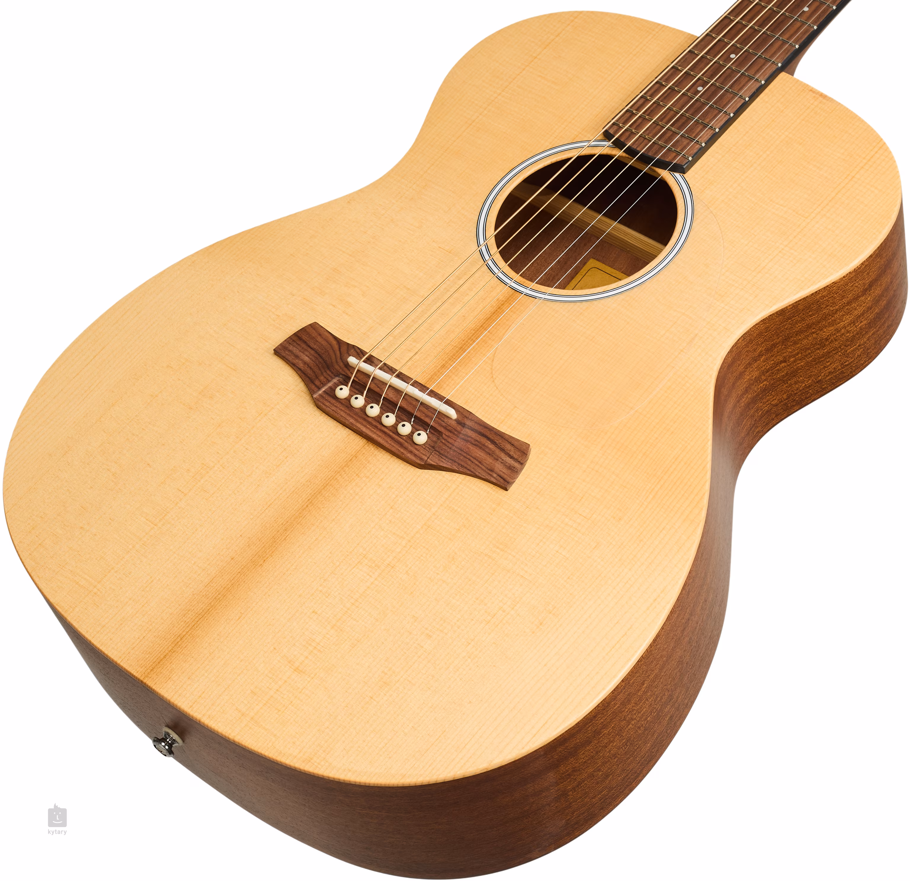 Struny sú pripevnené cez kostennú maticu a sedlo k chrómovým liatinovým ladiacim mechanizmom a mostíku z pau ferro. Nenápadný, ale štýlový povrch je zdôraznený priehľadným chráničom a rozetou zloženou z čiernych a bielych čiar.