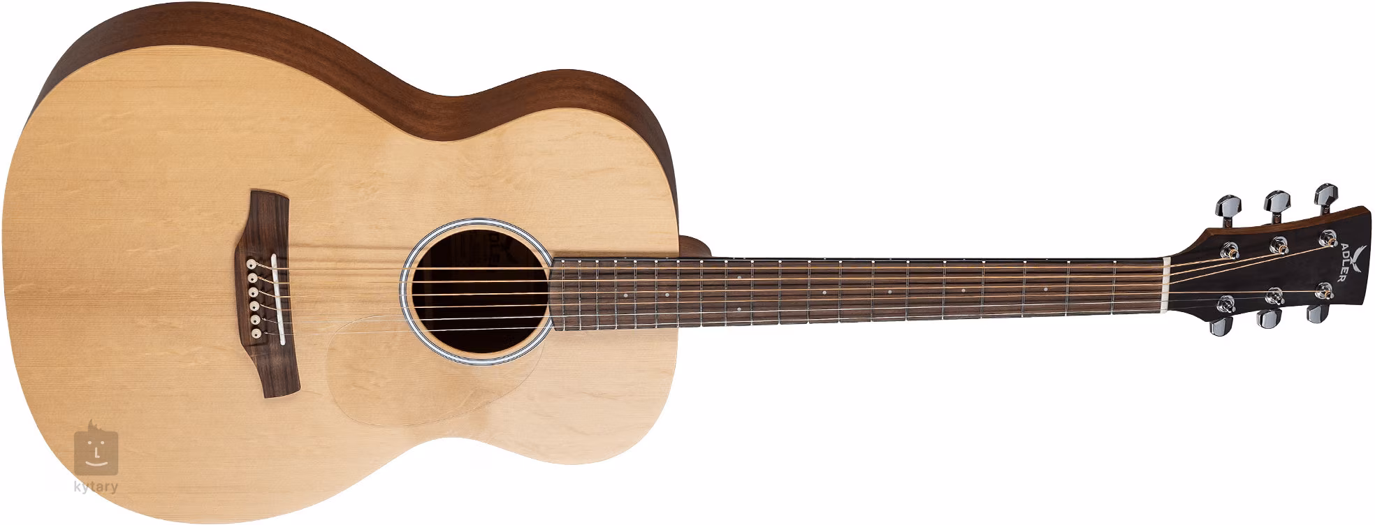 Akustická gitara Adler GuitarsOM10-SM je nástroj s pohodlným, kompaktnejším telom typu Orchestra a čistým, pevným tónom, ktorý oceníte pri hre prstami alebo trsátkom. Predná časť gitary je vyrobená z masívneho smreku Sitka, zatiaľ čo zadná časť a boky sú vyrobené z laminovaného mahagónu. Mahagónový krk je vybavený hmatníkom z pau ferro. Polohové bodky z imitácie perlete uľahčujú orientáciu na hmatníku.
