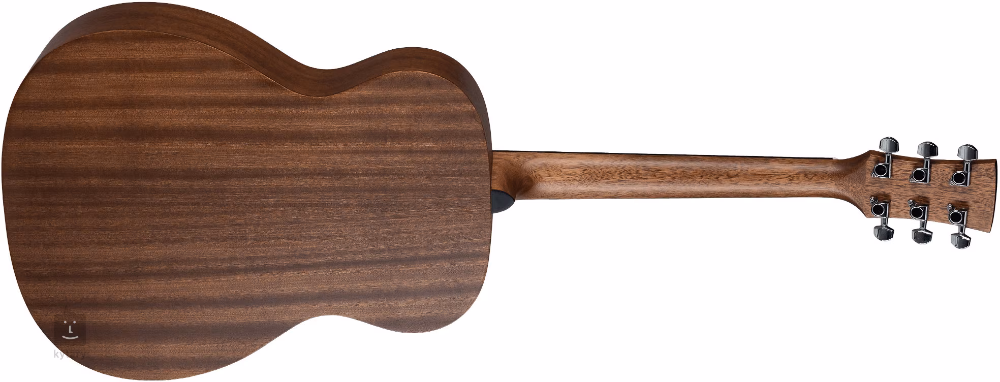 Struny sú pripevnené cez kostennú maticu a sedlo k chrómovým liatinovým ladiacim mechanizmom a mostíku z pau ferro. Nenápadný, ale štýlový povrch je zdôraznený priehľadným chráničom a rozetou zloženou z čiernych a bielych čiar.