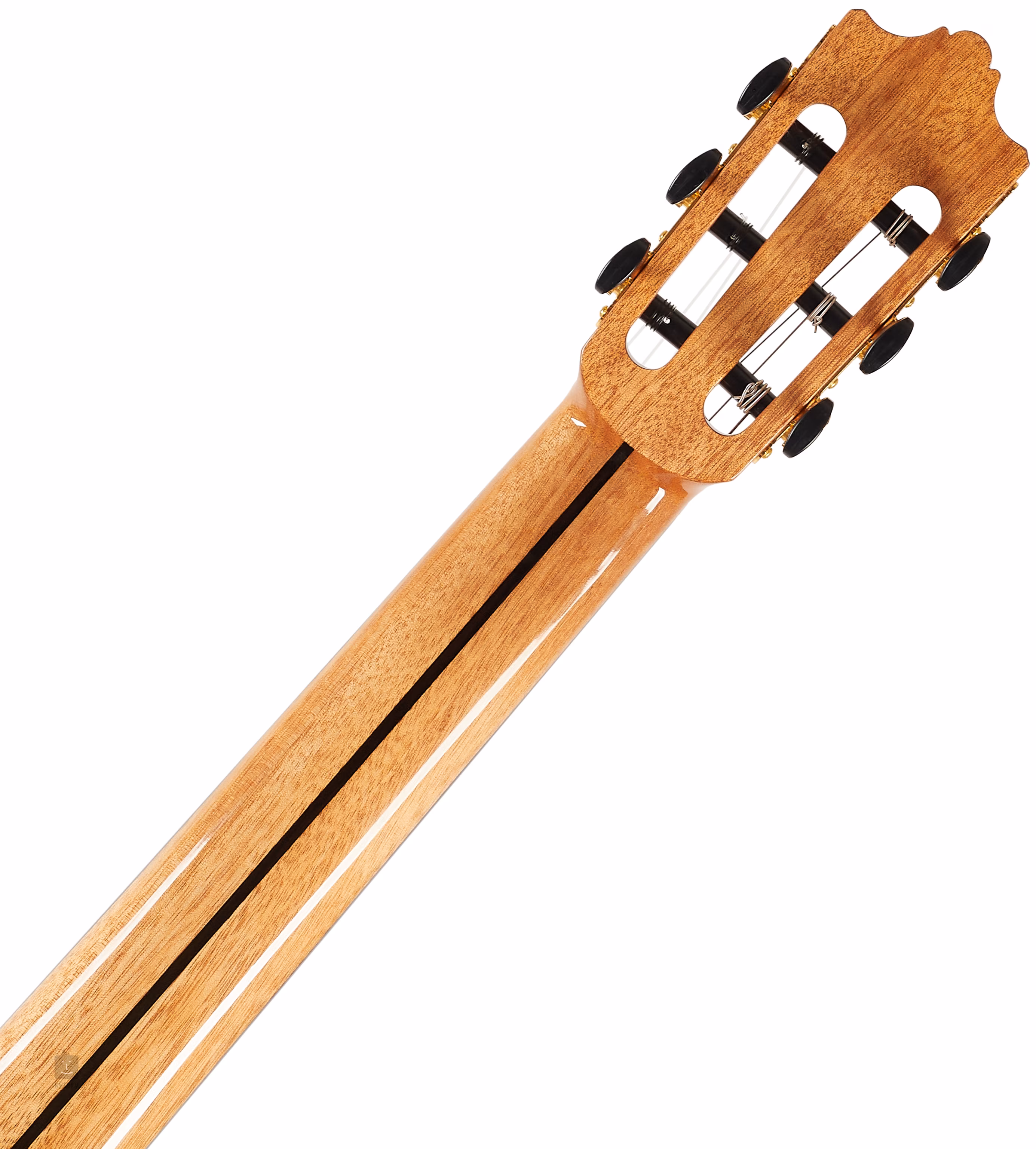 K cédrovému krku je prilepený ebenový hmatník osadený dvadsiatimi pražcami. Struny sú osadené v klasických ladiacich mechanikách v zlatom prevedení a ebenovom hmatníku s dvanástimi otvormi, t. j. struny sú spolu s hmatníkom vinuté dvakrát.