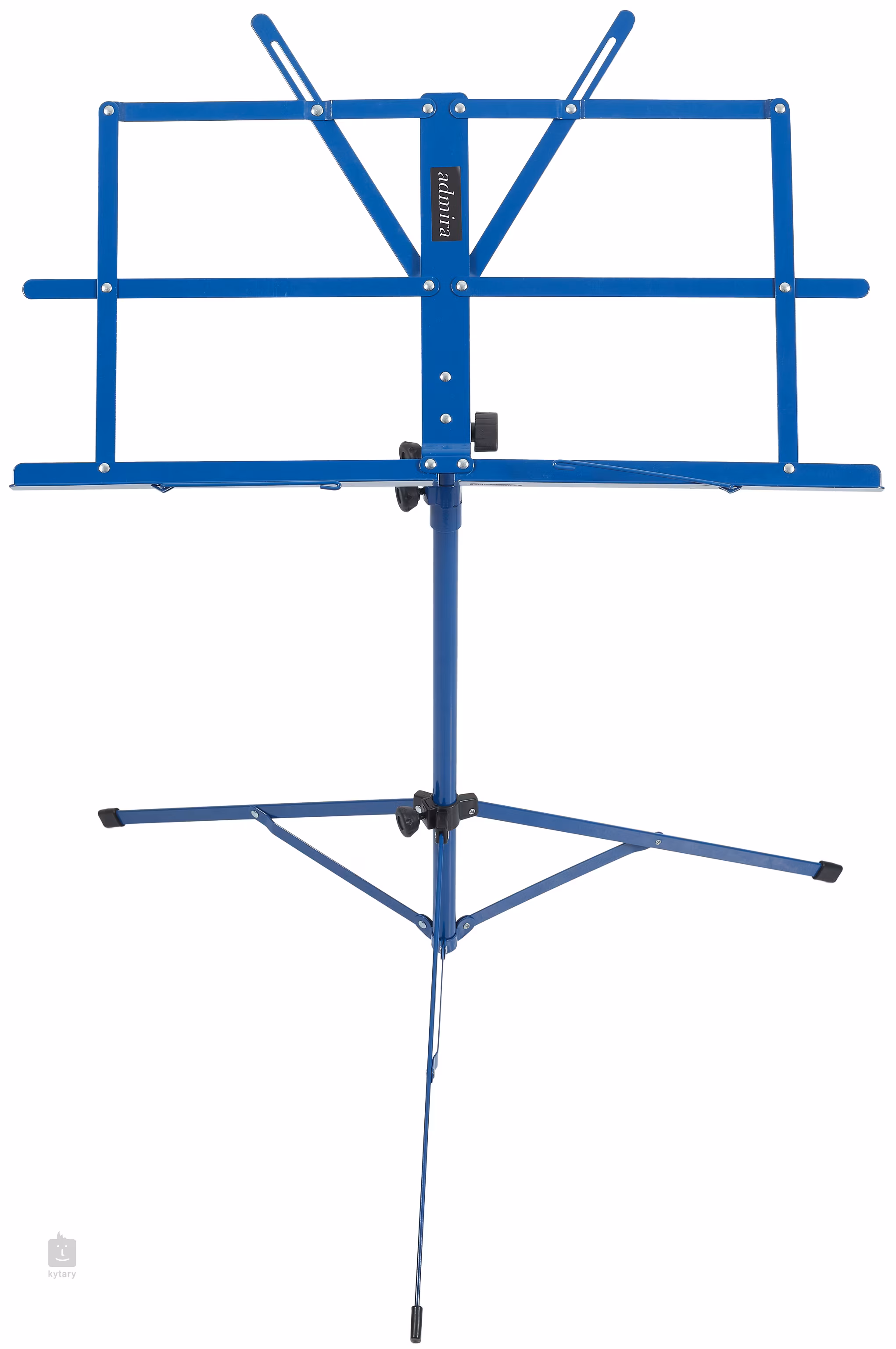 Skladací notový stojan Admira MUS006 Blue s kovovou konštrukciou, nastaviteľnou výškou (640 - 1270 mm) a notovým stojanom s rozmermi 505 x 290 mm. Stojan na noty sa dodáva v balení.