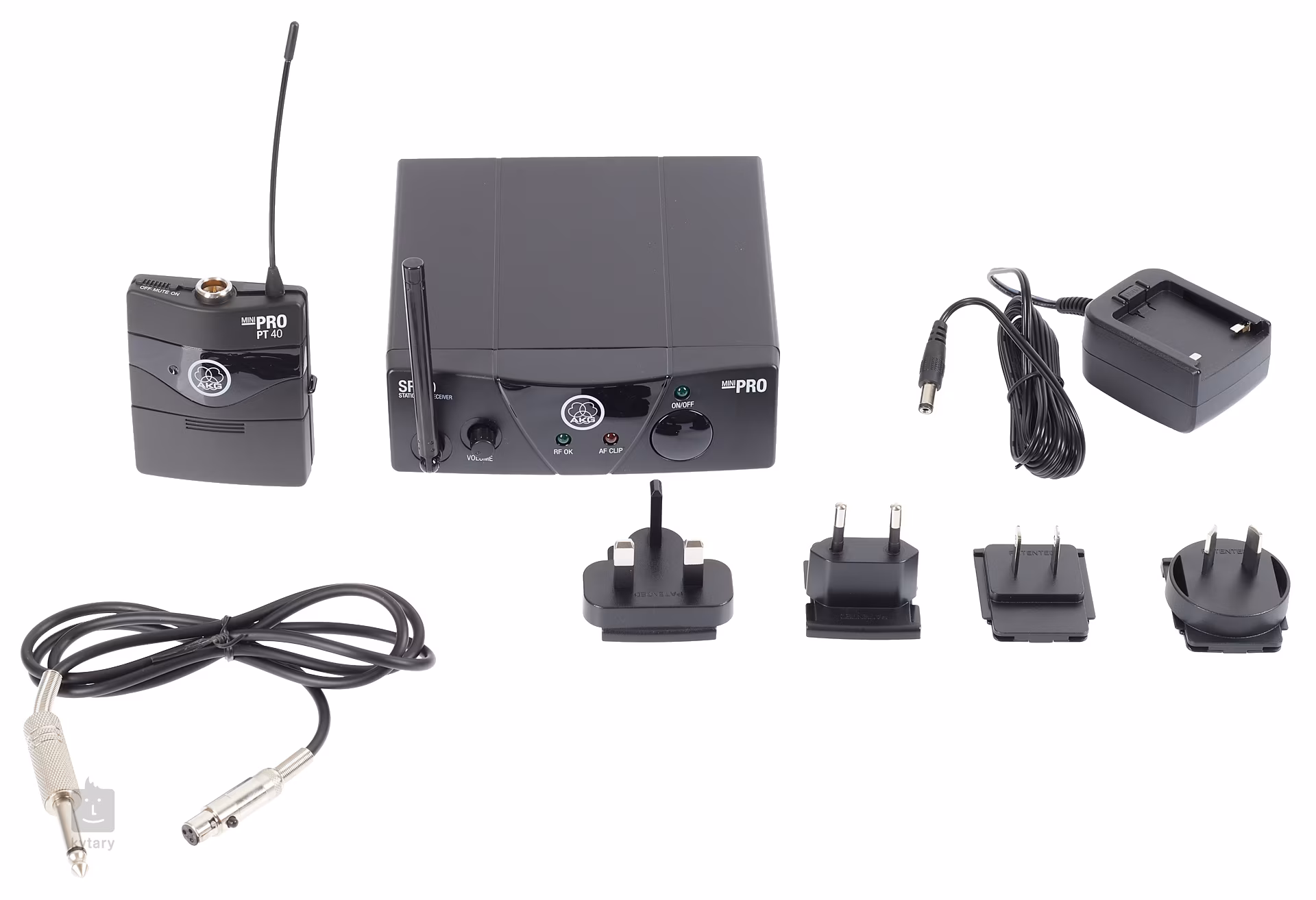 Bezdrôtový systém WMS40 Mini Instrumental Set ISM1 od spoločnosti AKG je vhodný na použitie s elektrickou alebo basovou gitarou, nástrojovými mikrofónmi alebo náhlavnými mikrofónmi. Po zapojení je pripravený na okamžité použitie a vždy vám poskytne vysokokvalitný a čistý zvuk. Vreckový vysielač je vybavený 3-pinovým mini XLR konektorom a slotom na jednu AA batériu, ktorá vydrží až 30 hodín nepretržitej prevádzky. Prijímač je veľmi kompaktný a má 6,3 mm jack konektor na pripojenie k mixážnemu pultu alebo zosilňovaču. Zvládne napätie v rozsahu 110 - 240 V, takže ho môžete používať takmer v každej krajine na svete. Balenie obsahuje napájací adaptér s redukciami pre rôzne typy zásuviek (EÚ, UK, USA), pripojovací kábel (mini XLR - Jack TS 6,3 mm) a jednu batériu AA.