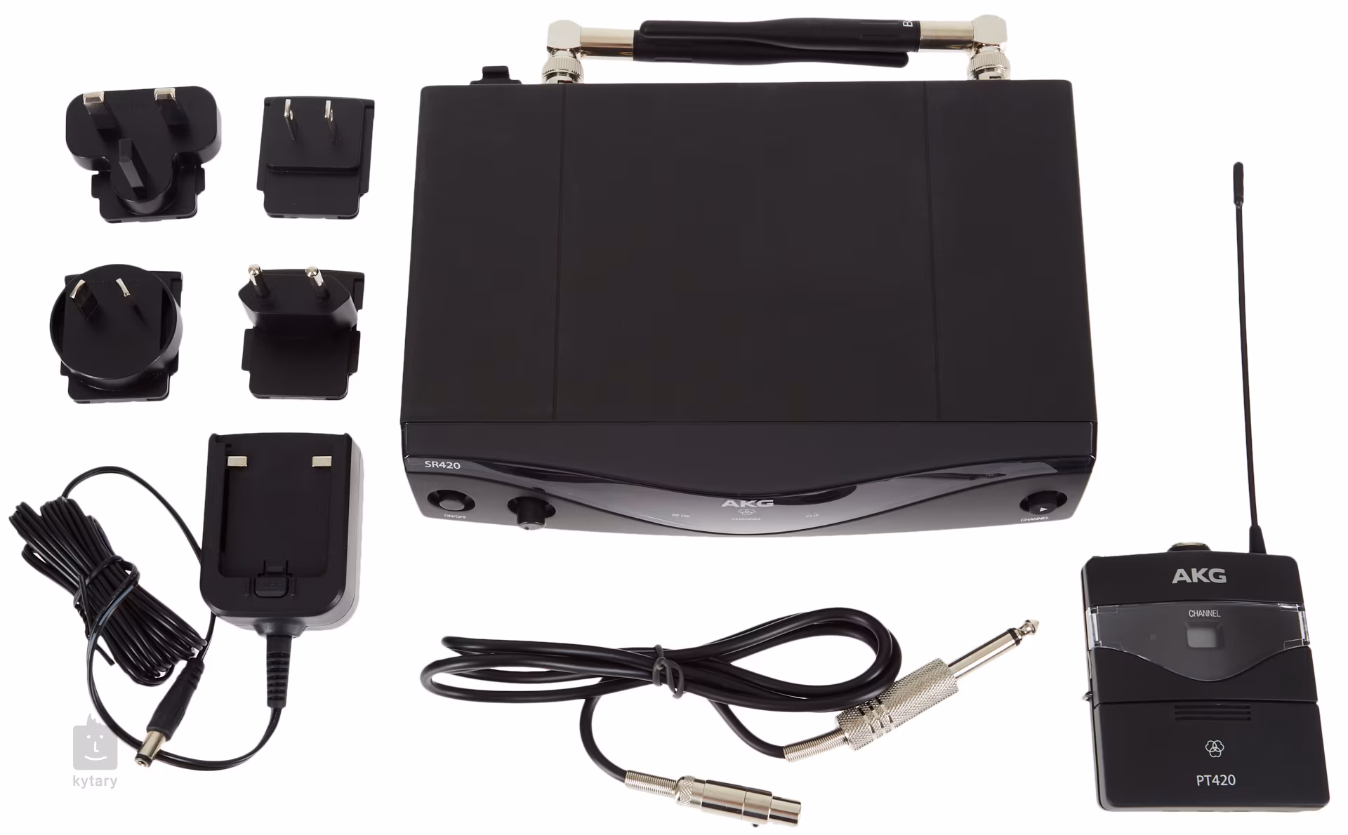 Súprava sa skladá z prijímača SR420, ručného vysielača PT420 a prístrojového kábla.
