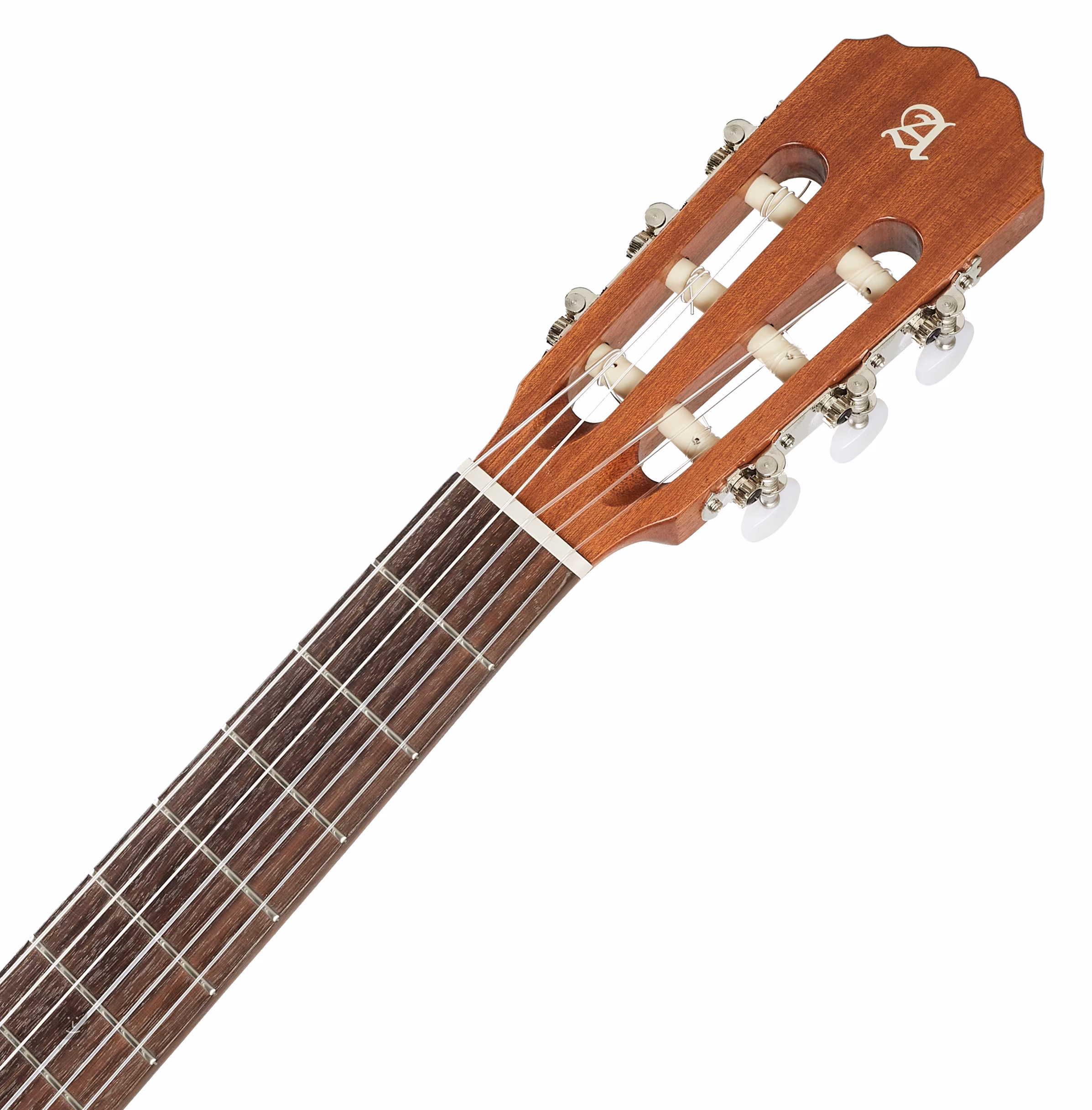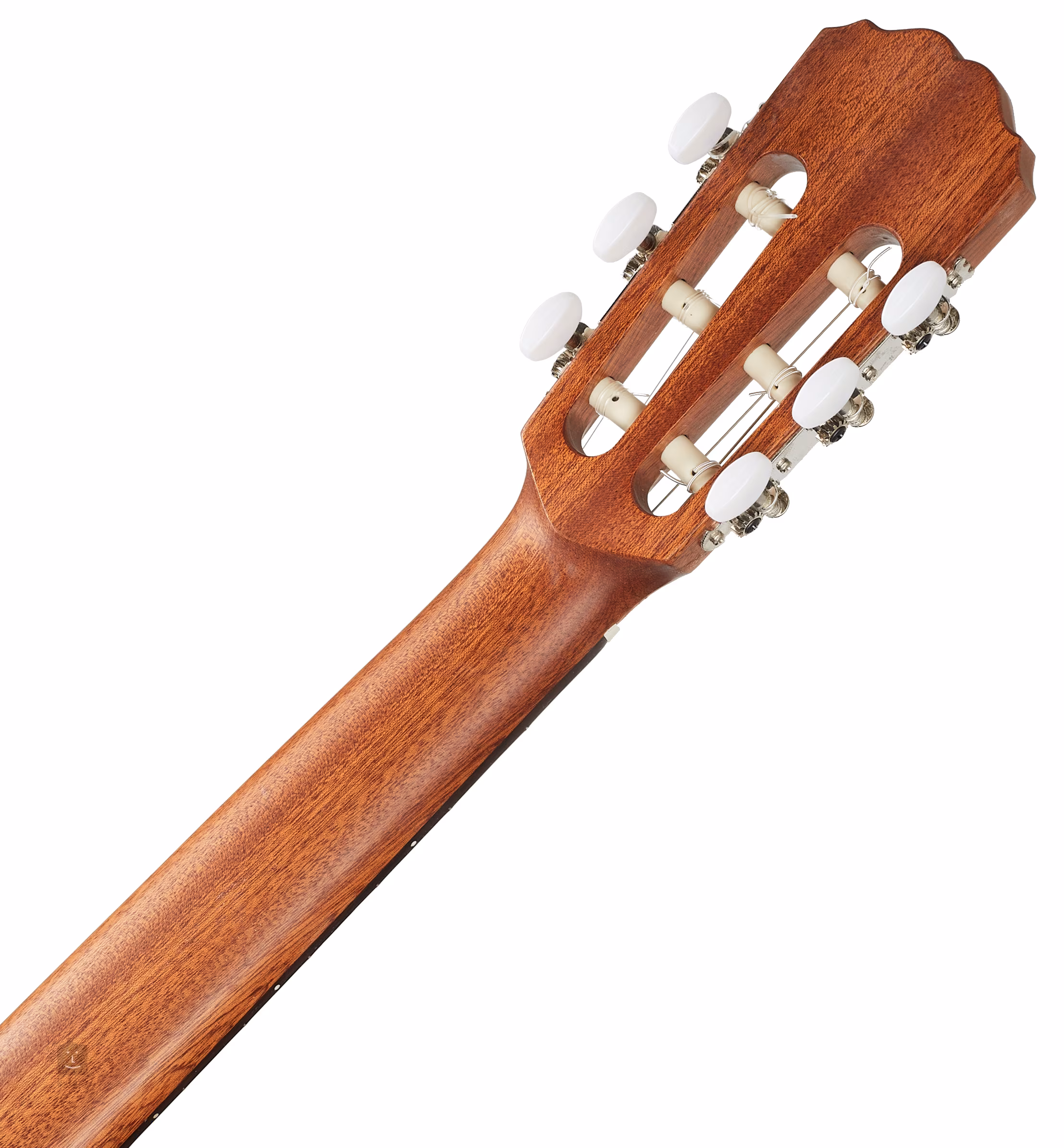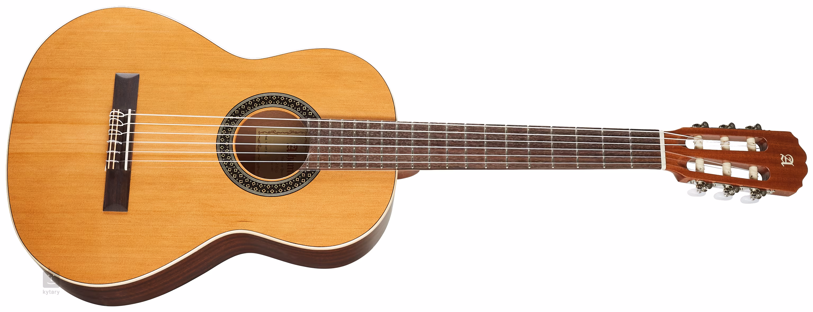 Přední deska modelu Alhambra 1 C HT v 3/4 velikosti je zhotovena z masivního červeného cedru, zadní deska a luby z překližovaného mahagonu. K mahagonovému ergonomicky tvarovanému krku je přilepen palisandrový hmatník osazený pražci z pakfongu/alpaky. Struny jsou přes nultý a sedlový pražec ze syntetického materiálu uchyceny v poniklovaných ladících mechanikách a palisandrové kobylce. Pěkné zpracování podtrhuje javorová obvodová lemovka těla a firemní logo na hlavici kytary.