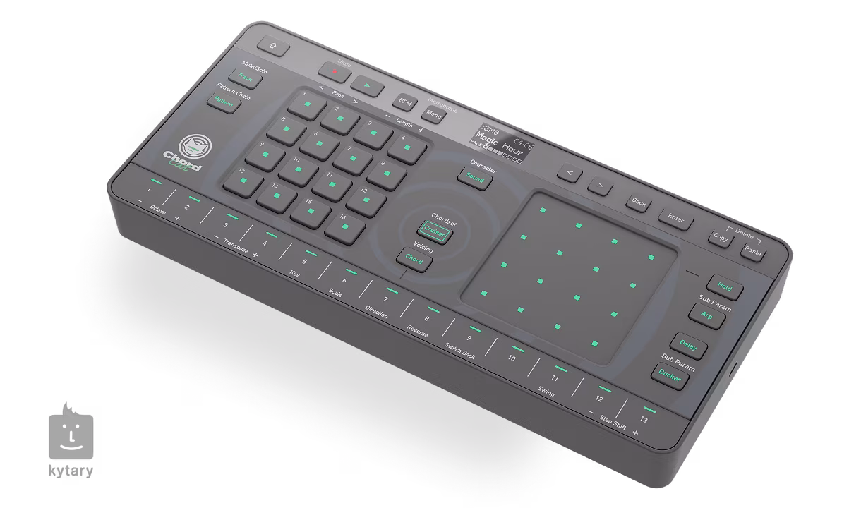AlphaTheta Chordcat je prenosná grooveboxová stanica určená na okamžitú inšpiráciu a tvorbu originálnych skladieb. Vďaka jedinečnému režimu Chord Cruiser ponúka až 110 000 kombinácií akordov, ktoré vám pomôžu vytvárať jedinečné postupy. Intuitívny pracovný postup uľahčuje počúvanie predstavených akordov, ukladanie obľúbených a ich plynulé reťazenie do postupov. LED indikácia tiež ukazuje, ktoré noty zodpovedajú nastavenej tónine a stupnici, čo ocenia začiatočníci aj profesionálni hudobníci.