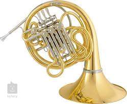 V.F.ČervenýF/ B mistrovský lesní roh(dvojlesnice),zlatomosazné provedení,v kompaktní stavbě, pakf. pouzdra ventilů, vrt. 11.7 mm, ozv. 305 mm,provedení 4. ventilu mimo řadu (offset), převod Minibal, lak, pouzdro 6648.