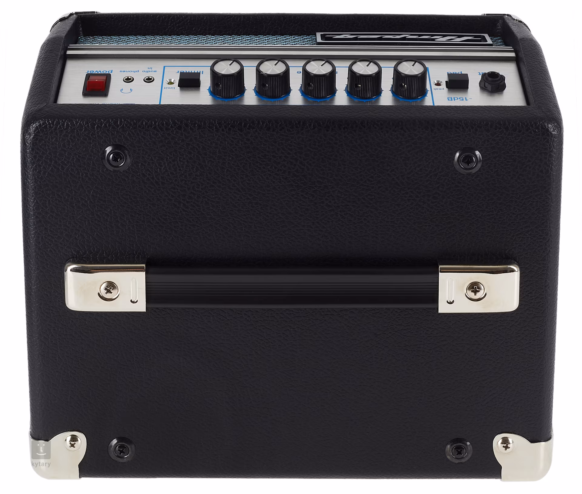 Na prednom paneli tohto zariadenia nájdete štandardné prvky. Prvým je vstup pre váš nástroj, ktorý má prepínač pre -15 dB pad, aby si jednotka optimálne rozumela s pasívnymi aj aktívnymi nástrojmi. Ďalej tu nájdete štandardnú sadu potenciometrov, a to Gain, Bass, Mid, Treble a Volume. V spolupráci s Gainom funguje LED dióda Peak, ktorá indikuje orezanie. Na prednom paneli sa nachádza aj zabudovaný spínač limitéra s LED diódou signálu, vstup pre externé zariadenia, ako sú CD alebo MP3 prehrávače, a výstup pre slúchadlá.
