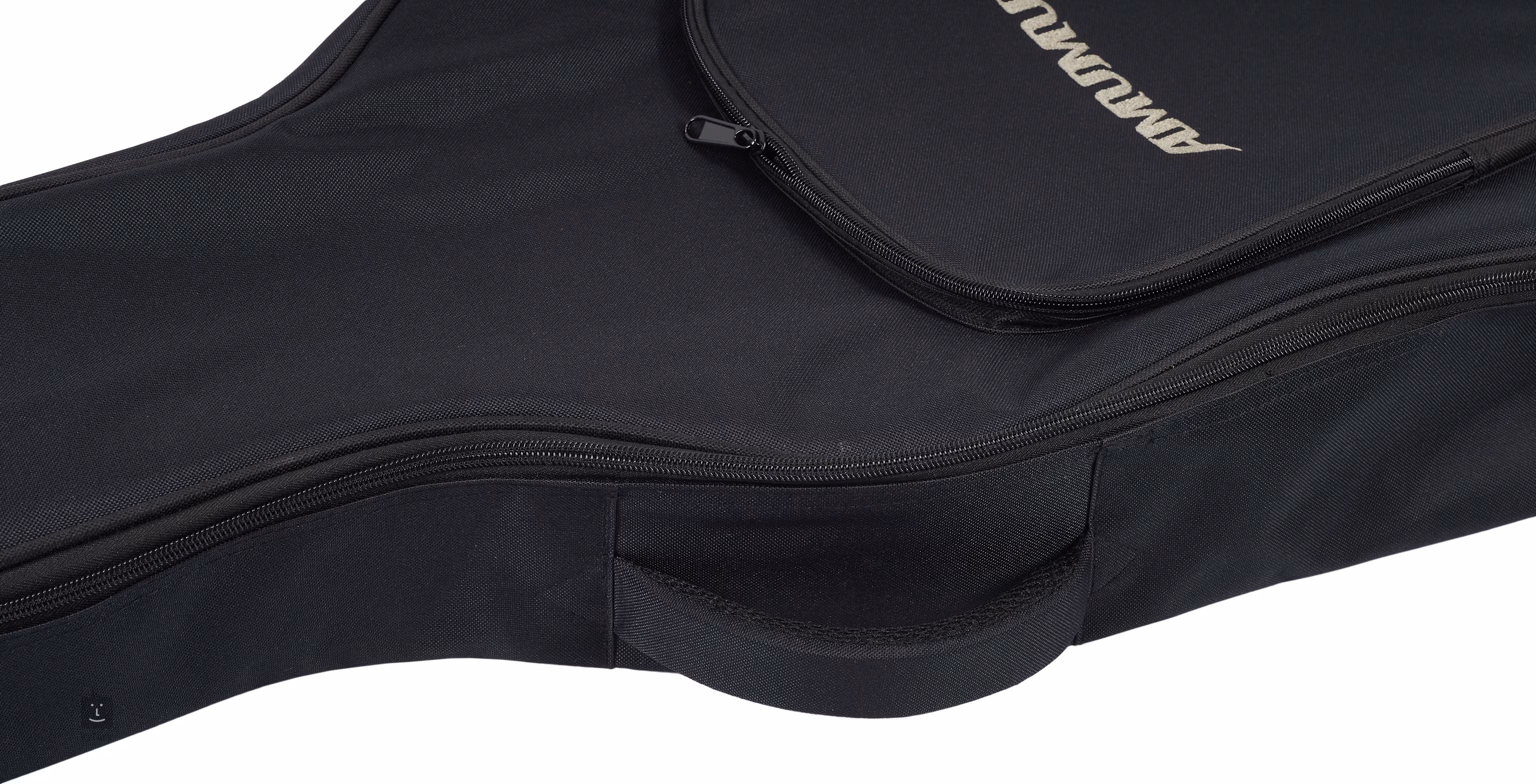 Značka Amumu predstavuje rad puzdier Agile, ktoré sa postarajú o spoľahlivú ochranu vášho nástroja a zároveň potešia cenou. Sú vyrobené z kvalitného polyesteru 900D, ktorý vyniká svojou odolnosťou. O ochranu laku a dreva nástroja sa potom stará mäkší polyester 210D na vnútornej strane, ako aj 12 mm polstrovanie, ktoré zabezpečí ochranu vašej gitary pri nárazoch, pádoch a nešetrnom zaobchádzaní. Puzdro má veľké vrecko na príslušenstvo, do ktorého môžete uložiť ladičku, kapodastr alebo náhradné struny. Na prenášanie slúži praktická rukoväť alebo nastaviteľné chrbtové popruhy. Tento model je vhodný pre akustické gitary typu Jumbo.