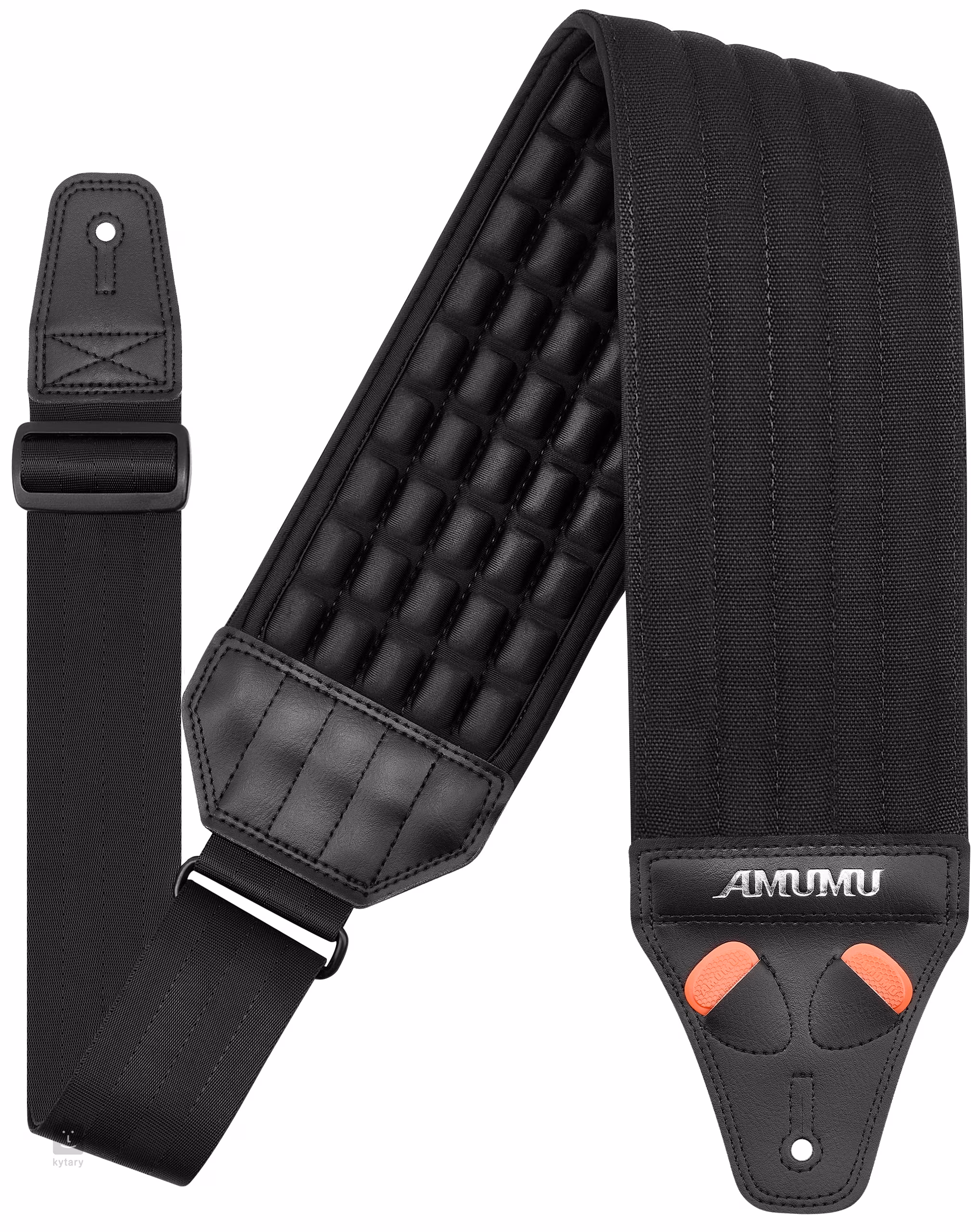 Basový popruh AMUMU AIRAFT je majstrovským dielom dizajnu a pohodlia, ktoré využíva priedušné 3D vypuklé vzduchové bunky, pevné a odolné bavlnené plátno s gramážou 453,6 g/m², vysoko elastické neoprénové polstrovanie a priedušnú a vlhkosť odvádzajúcu tkaninu Multi-Spandex. Na nastavenie dĺžky nie je potrebná žiadna pracka, čo zabraňuje poškriabaniu nástroja, zatiaľ čo dvojvrstvové 3,5 mm hrubé kožené konce remeňa s prešitými otvormi zaručujú dlhú životnosť a pevné uchopenie. Pôsobivá šírka 102 mm je ideálna pre ťažké nástroje (napríklad basgitary), pretože rozkladá hmotnosť, takže môžete vydržať ešte dlhšie sedenia bez boľavého chrbta. Táto dĺžka je vhodná pre hráčov menšej postavy.