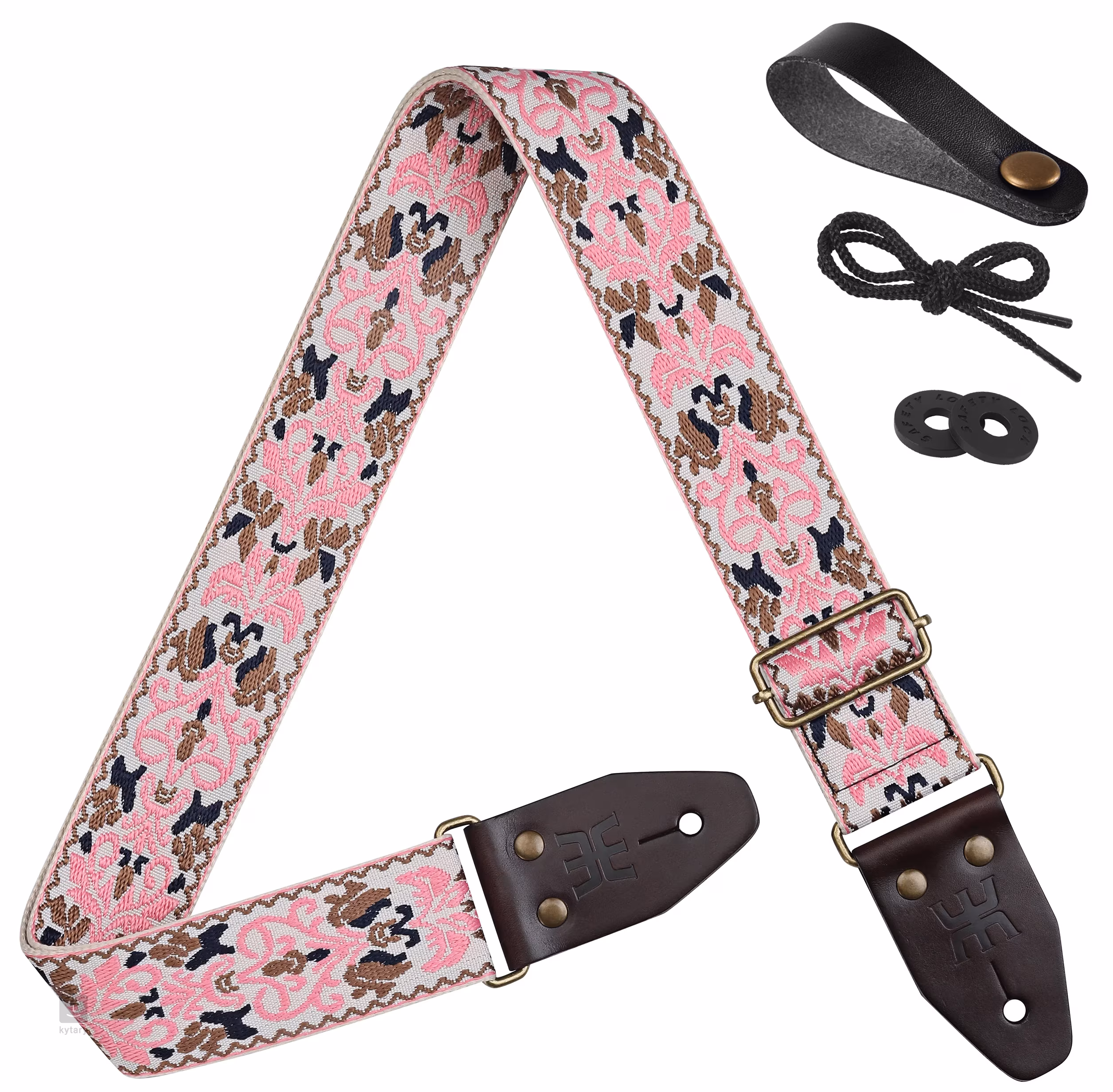 Kytarové popruhy značky AMUMU jsou známé svou odolností, spolehlivostí a kvalitou provedení. Díky široké nabídce modelů a barev si mezi nimi vybere opravdu každý. Popruh z řady Hearts & Spades vyniká nádherným žakárovým vzorem a disponuje kvalitními koženými koncovkami pro pevné uchycení k nástroji. Je vyroben ze směsi polyesteru a bavlny a umožňuje flexibilní nastavení délky v rozmezí 94 až 160 cm. Šířka popruhu je 5 cm. Dopřejte svému nástroji stylový doplněk, díky němuž vynikne na každém pódiu.