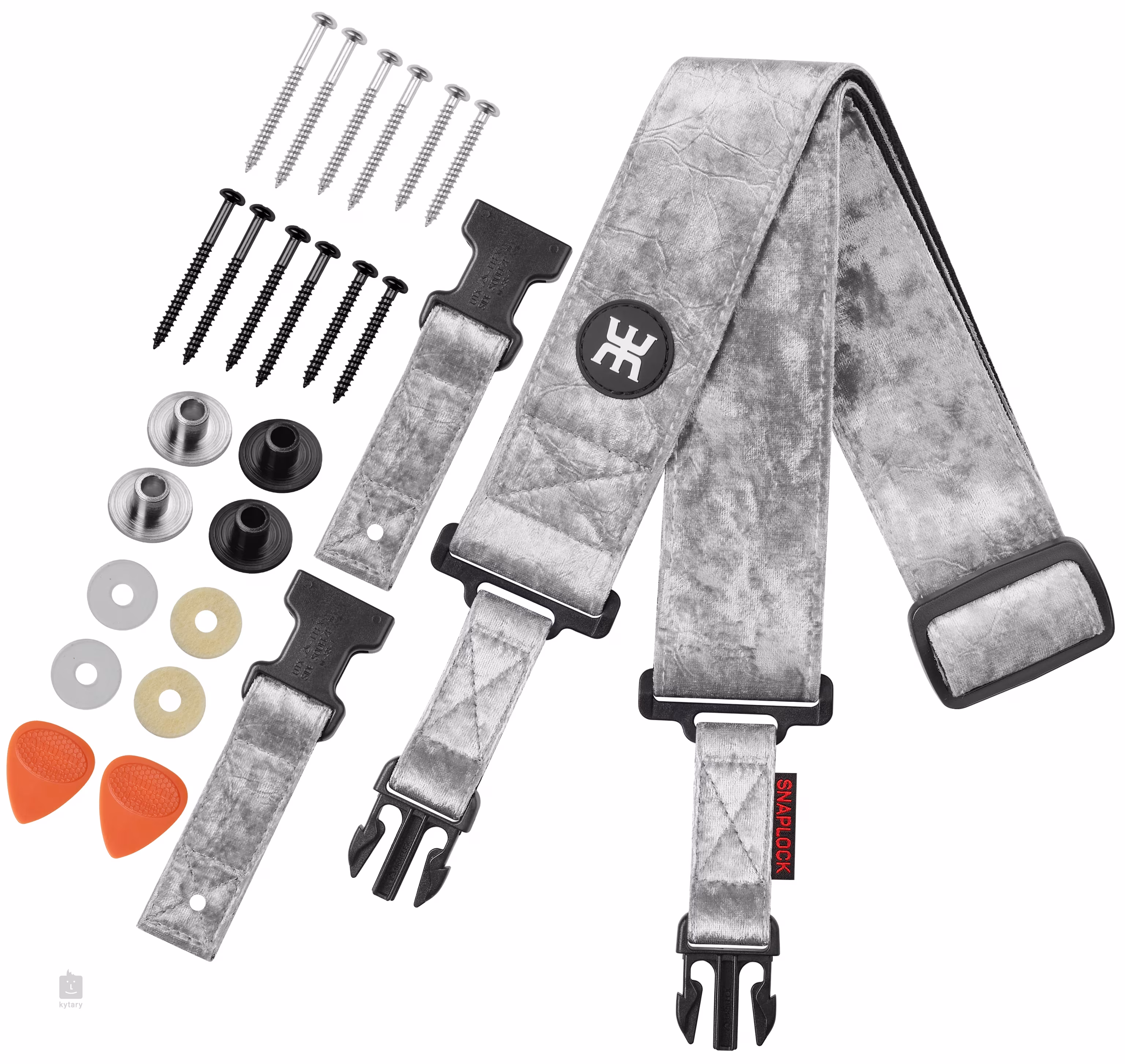 Kytarové popruhy značky AMUMU z řady SNAPLOCK™ Pro jsou určeny pro všechny kytaristy, co hledají stoprocentní spolehlivost a flexibilitu. Popruh se na rozdíl od jiných modelů přidělává ke kytaře tak, že se jeho konocovka přivrtá přímo na nástroj pomocí přiložených rolen a šroubků, což zajistí, že vám kytara z popruhu už nikdy nevypadne. V sadě jsou rolny ve dvou různých barvách a šroubky různých délek, aby byla zajištěna kompatibilita s vaším modelem kytary.