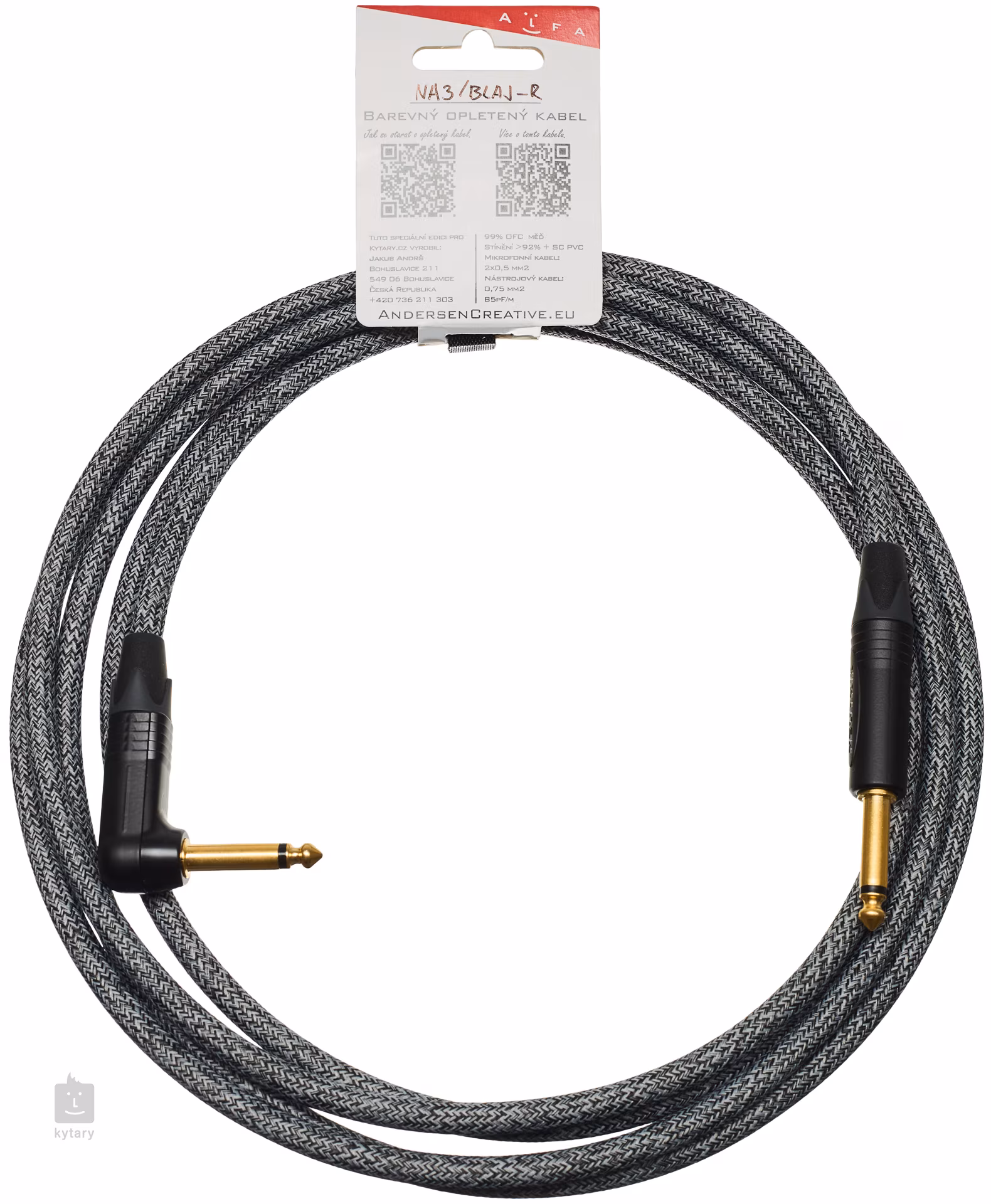 Tento nástrojový kábelAndersen Creative bol navrhnutý a vyrobený exkluzívne pre Kytary.cz. Je to špičkový kábel vyrobený v Českej republike, ktorý nenájdete v žiadnom inom obchode. Je založený na profesionálnom jadre Bespeco z najvyššej produktovej rady Alpha, ktoré ponúka špičkové prenosové vlastnosti, nízku kapacitu 85 pF/m (±5 %) a husté tienenie (≥ 92 %) doplnené o polovodič PVC. Vďaka vodiču 1x 0,75 mm² zabezpečuje kábel čistý, dynamický a verný prenos signálu bez zbytočných strát.