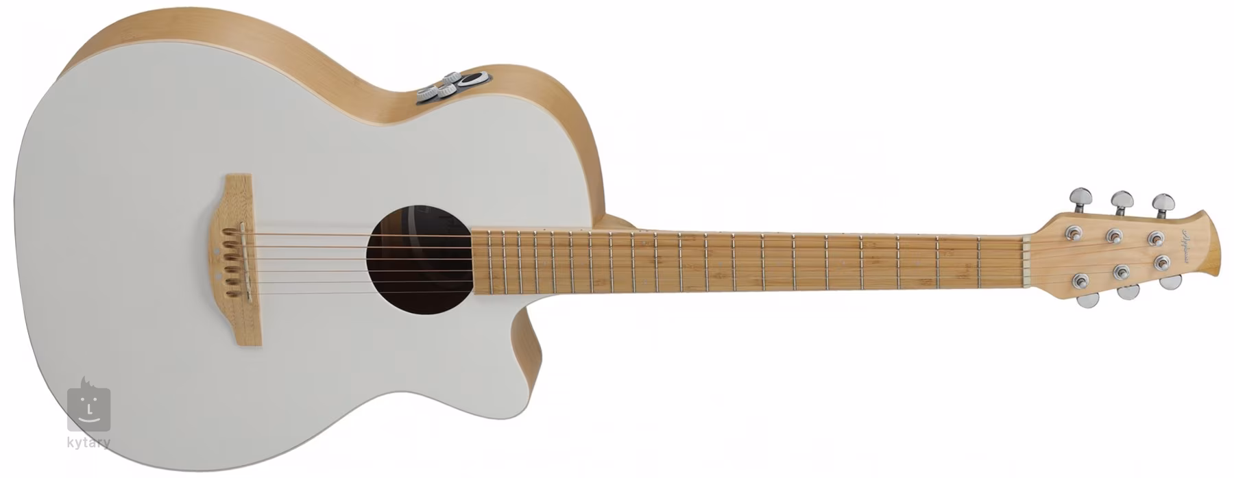 Predná strana elektroakustickej gitary Jump Bamboo OMce White Canvas je vyrobená z masívneho smrekového dreva, zatiaľ čo zadná strana a luby sú z laminovaného bambusu. Krk, hmatník a kobylka sú vyrobené z bambusu.