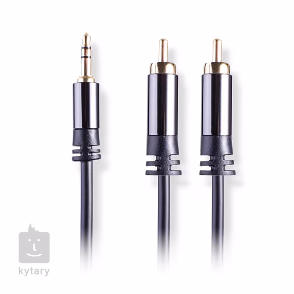 Stereofónny audio kábel s konektormi 3,5 mm Jack - 2x RCA. Má pozlátené konektory, vodič z bezkyslíkatej medi a kvalitné tienenie, vonkajšie opletenie zvyšuje odolnosť a zabraňuje nepríjemnému zamotávaniu.