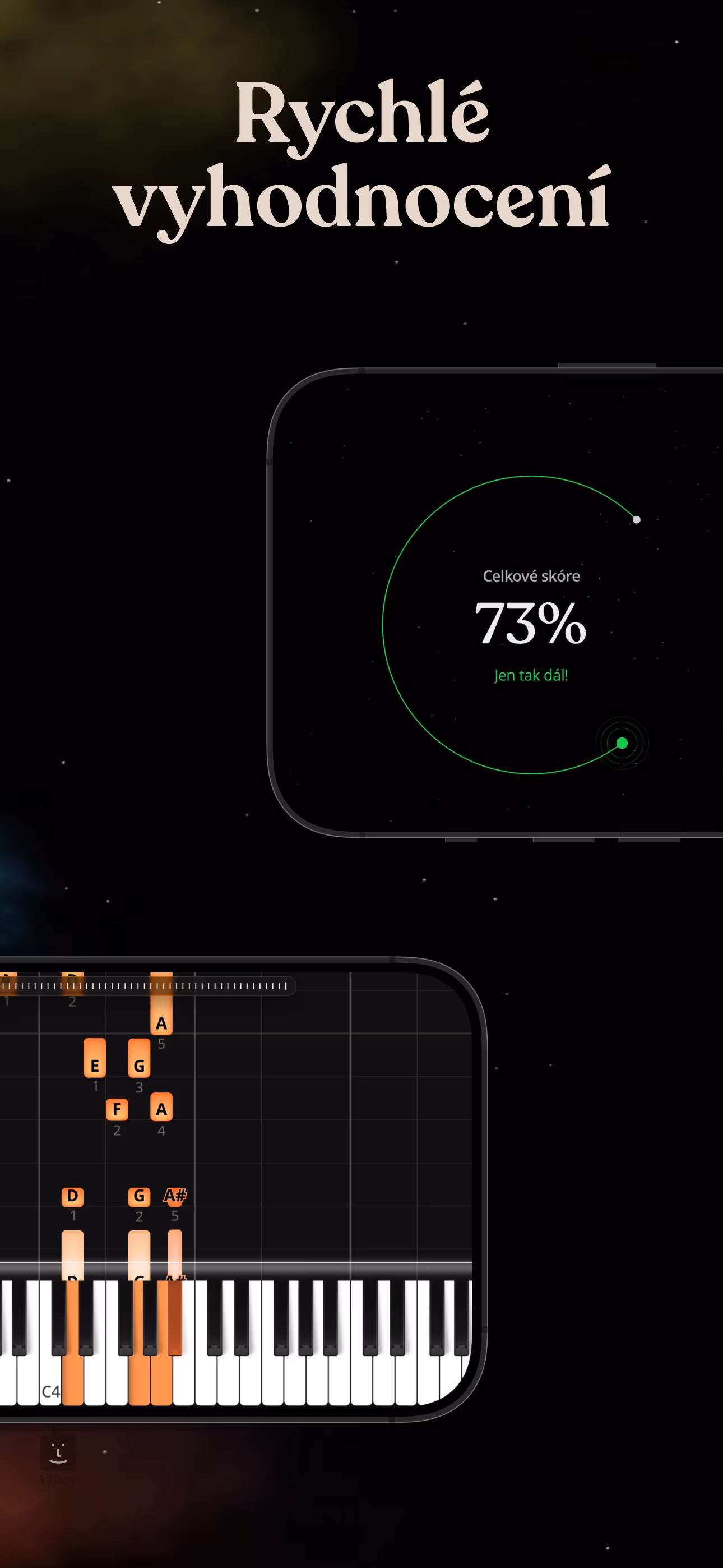 Od momentu, keď začnete, sa Artie prispôsobí vášmu tempu a hudobnému vkusu. Na základe vašej hry vytvára personalizované cvičenia a ponúka skladby, ktoré si budete užívať od prvých minút. Kým tradičné online kurzy majú pevnú štruktúru, Artie reaguje na váš pokrok okamžite a prirodzene, čím podporuje pravidelné cvičenie a budovanie zdravých hudobných návykov. Nie je divu, že tisíce študentov, ktorí strávia pri klavíri v priemere viac ako 12 minút denne, to vyskúšali v prvých týždňoch – a skutočne robia rýchle pokroky.