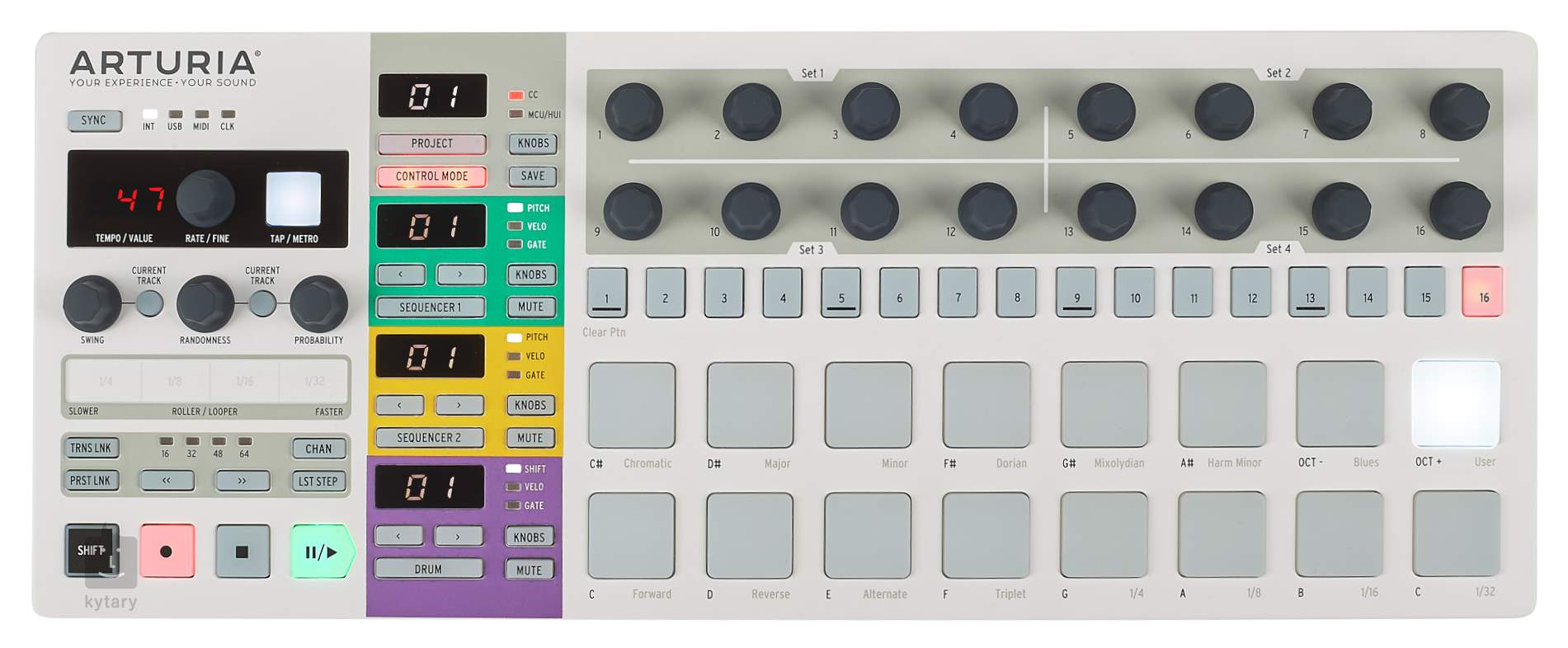 Kompaktný a prenosný ovládač podložky ! Ovláda a spravuje DAW, zvukové slučky, softvérové spúšťanie, nástroje VST, efekty, softvér pre bicie, DJ aplikácie, MIDI syntetizátor a dokonca aj analógové nástroje, ktoré sú schopné reagovať na ovládacie napätie - CV/GATE. Možnosti sú takmer nekonečné. BeatStep je určený pre širokú škálu hudobníkov.