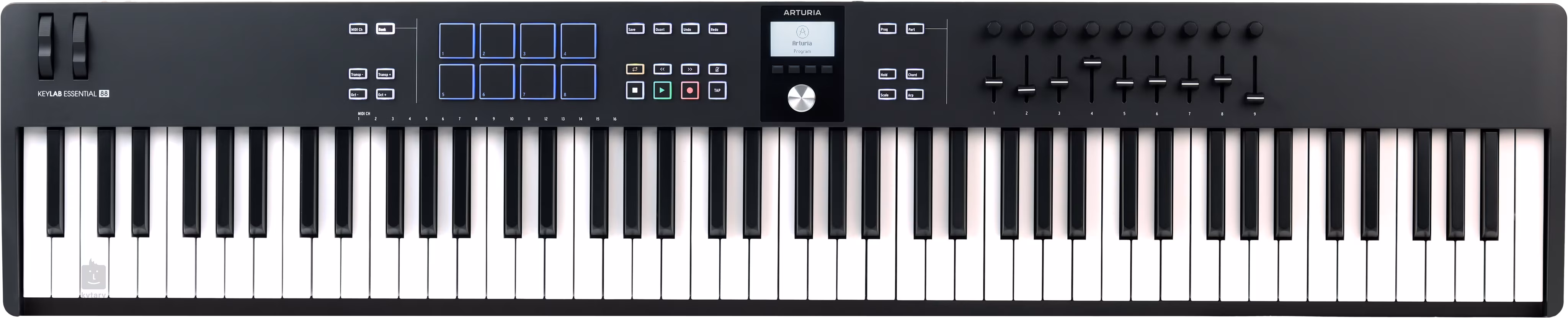 Arturia KeyLab Essential 88 MK3 je vylepšená verzia obľúbeného MIDI kontroléra s polo-váženou klaviatúrou, 88 klávesmi plnej veľkosti, 8 RGB podsvietenými padmi, kompletnou integráciou so softvérom Arturia Analog Lab, podporou MCU aj HUI riadiacich protokolov a prednastavenými skriptami pre ešte lepšie ovládanie vybraných moderných DAW.