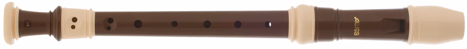 Sopránová zobcová flauta hnedej farby. Prístroj je plastový a má textilný poťah.
