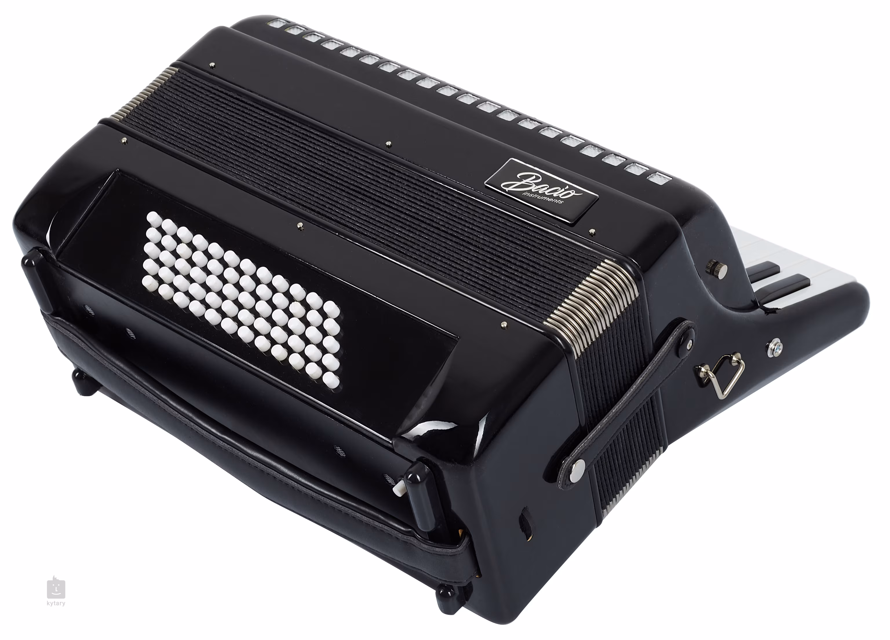 Značka Bacio ponúka cenovo dostupné hudobné nástroje vhodné pre úplných začiatočníkov. Klávesový akordeón AT3460 sa dodáva v hliníkovom puzdre.
