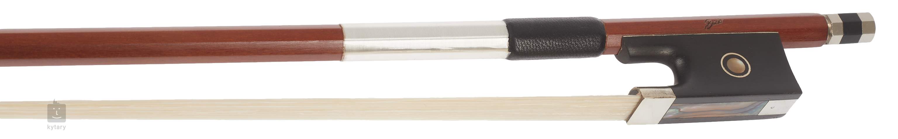 Tento husľový sláčik ponúka kvalitné spracovanie a materiály, ktoré v tejto cenovej kategórii nikde inde nenájdete. Jeho základom je osemhranná palica z brazílskeho dreva, ktorá je vybavená ebenovou žabkou s perleťovou intarziou. Prút je potom na žabke ovinutý postriebreným medeným drôtom a vybavený koženou rukoväťou na pohodlné držanie. Okrem toho je luk vybavený prírodnými konskými žilami.