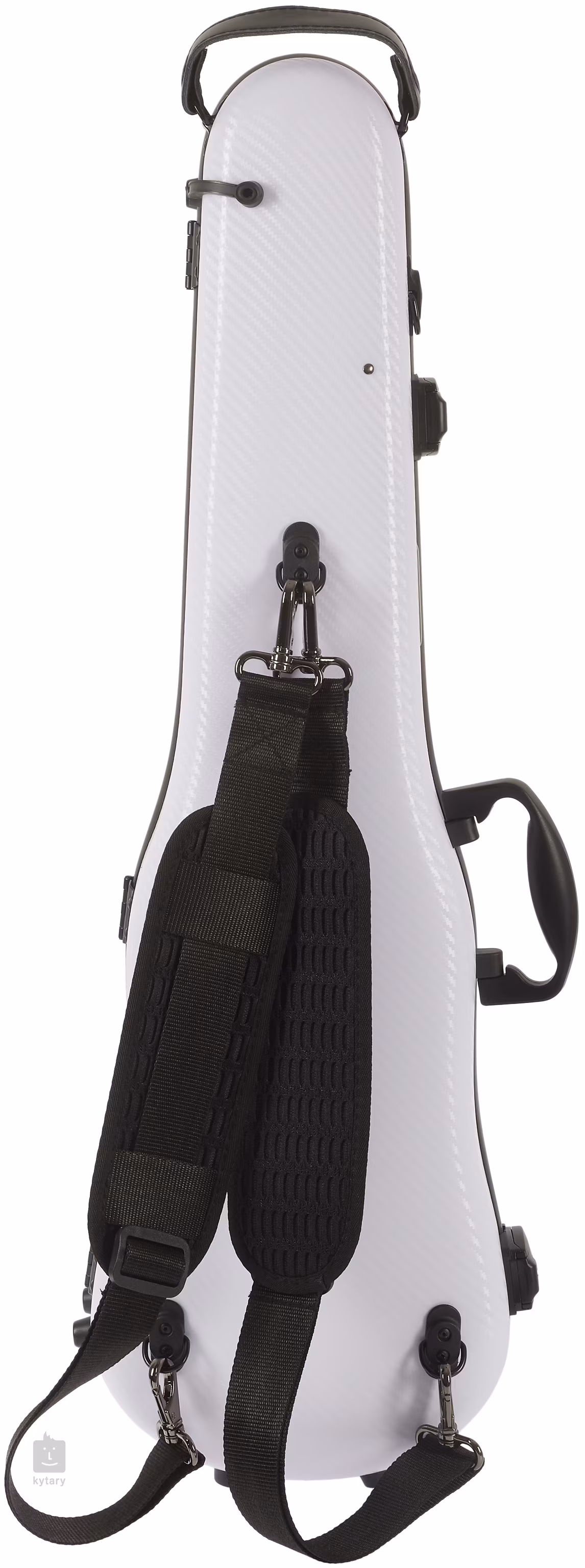 Puzdro na husle z uhlíkového kompozitu s dvoma zámkami a odomykaním pomocou kódu/hesla, odnímateľným vreckom na noty, držadlami po stranách a na vrchu, dvoma ramennými popruhmi a dvoma držiakmi na sláčik.