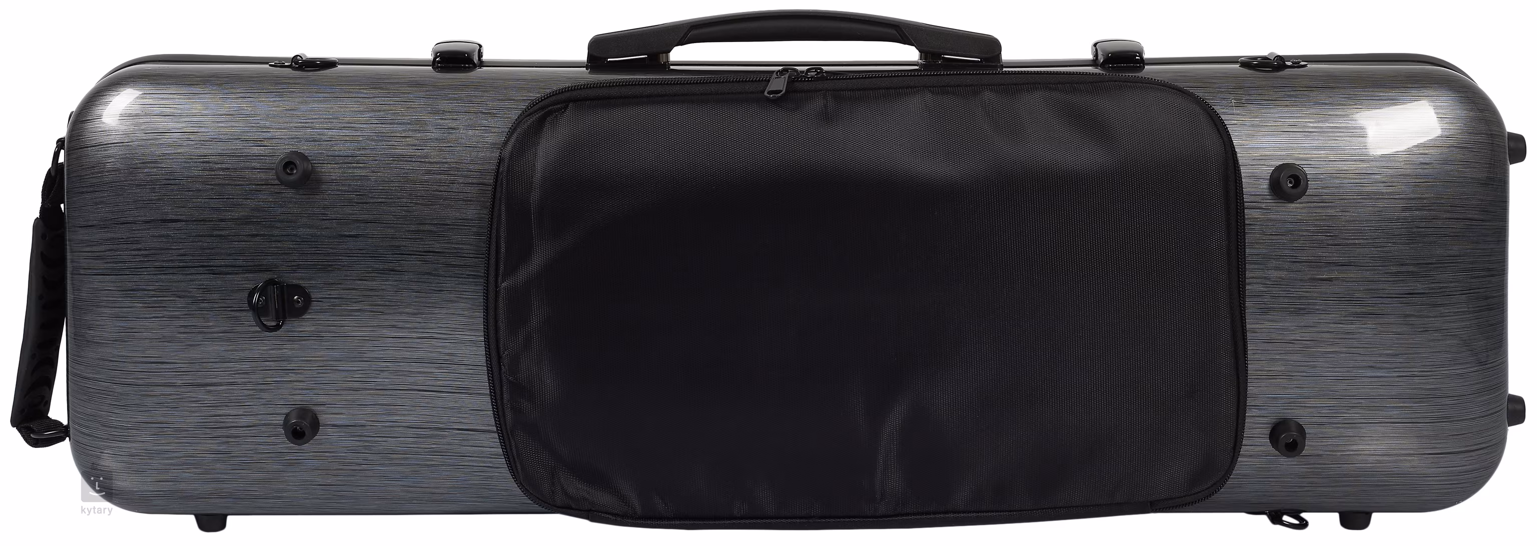 Puzdro na husle z uhlíkového kompozitu s kovovým kovaním, pohodlnou rukoväťou, zamatovým poťahom vnútra puzdra, notovým puzdrom, dvoma držiakmi na sláčik a popruhom.