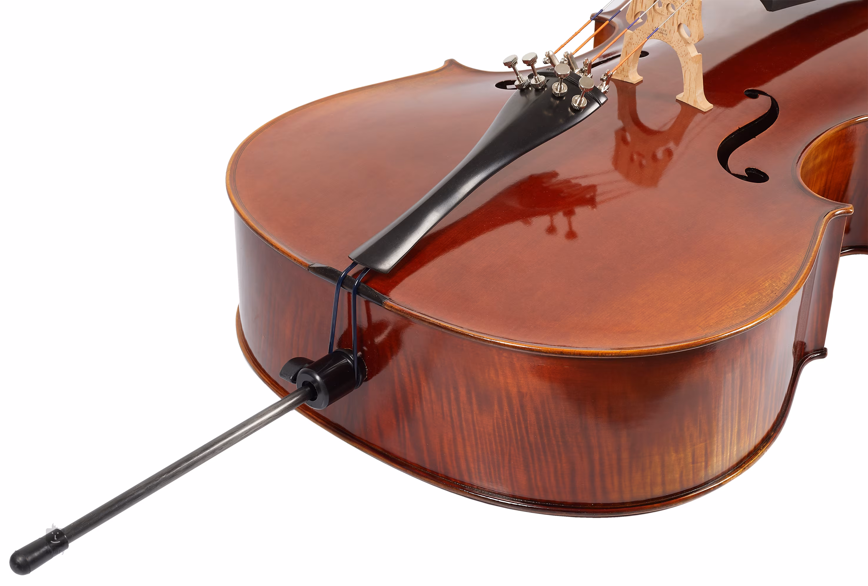 Toto violoncello jistě potěší zejména zkušené hráče, kteří hledají opravdu kvalitní nástroj bez kompromisů. Tento model je vyráběn ručně a za použití výběrových materiálů – jeho vrchní deska je tradičně vyrobena ze smrkového dřeva, zadní deska a boky jsou pak z krásně žíhaného javoru nejvyšší kvality. Garnitura i hmatník jsou z ebenového dřeva, kobylka je dodána firmou Aubert a struník je vybaven precizními dolaďovači. Nástroj je ručně lakován tradičním lihovým lakem.
