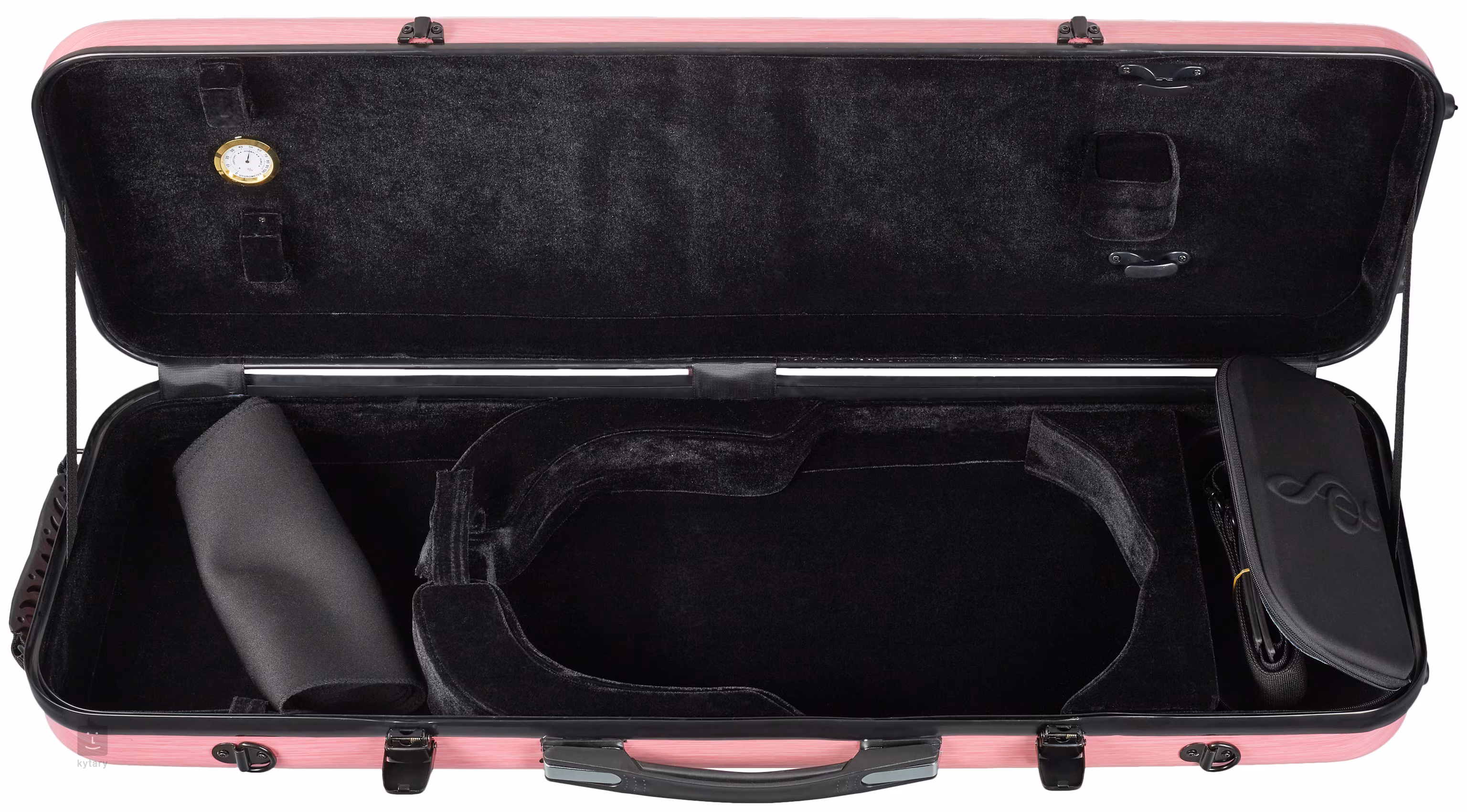 Bacio Instruments SVC005P Pink je vysoko kvalitné pevné puzdro vyrobené z extra tvrdého syntetického materiálu, ktoré spoľahlivo ochráni váš nástroj pred nárazmi a nepriaznivými poveternostnými podmienkami. Puzdro okamžite upúta pozornosť svojím krásnym ružovým dizajnom a vyznačuje sa aj nízkou hmotnosťou, takže vás neunaví ani pri celodennom nosení. Vnútro puzdra je vybavené hrubou výstelkou a mäkkou semišovou podšívkou, ktorá zaručuje ochranu pred poškriabaním laku alebo dreva. Obsahuje tiež praktický vlhkomer, ktorý vám umožní sledovať úroveň vlhkosti vo vnútri puzdra a v prípade potreby včas zakúpiť zvlhčovač. Pohodlie na cestách zaručuje odnímateľný ramenný popruh, dve pohodlné rukoväte a dostatok úložného priestoru pre sláčik a ďalšie drobné príslušenstvo. Portfólio spoločnosti Bacio Instruments zahŕňa sláčikové a dychové nástroje, ale predovšetkým širokú škálu príslušenstva, takže si každý nájde to svoje.