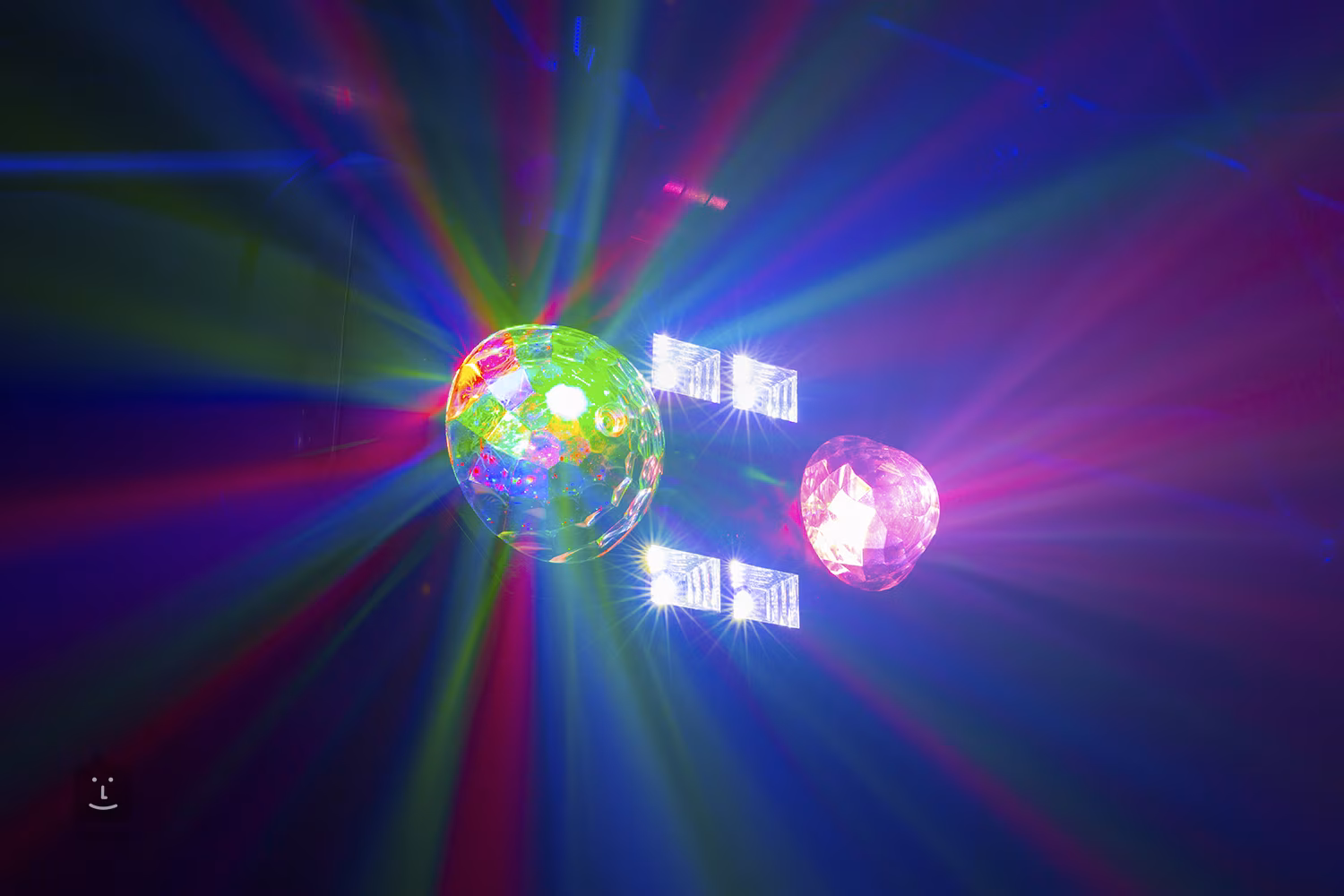 Zariadenie možno ovládať pomocou bezdrôtového infračerveného diaľkového ovládača, ktorý je súčasťou balenia. K dispozícii sú aj automatické alebo zvukom riadené programy a režim Master/Slave. Súčasťou dodávky je robustný držiak na montáž na nosnú konštrukciu.