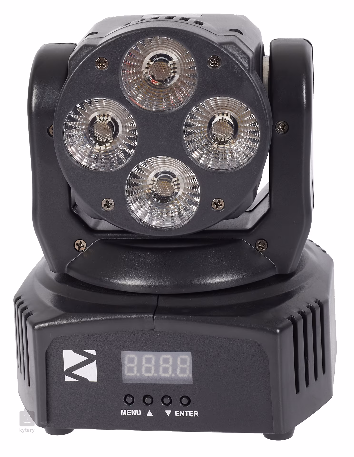 Na vytváranie farebných svetelných efektov sa používa miešanie farieb RGBW, tri farebné predvoľby a štyri prednastavené svetelné šou. K dispozícii je aj elektronický stmievač (0 - 100 %) a samozrejme funkcie Pan (540°) a Tilt (180°).