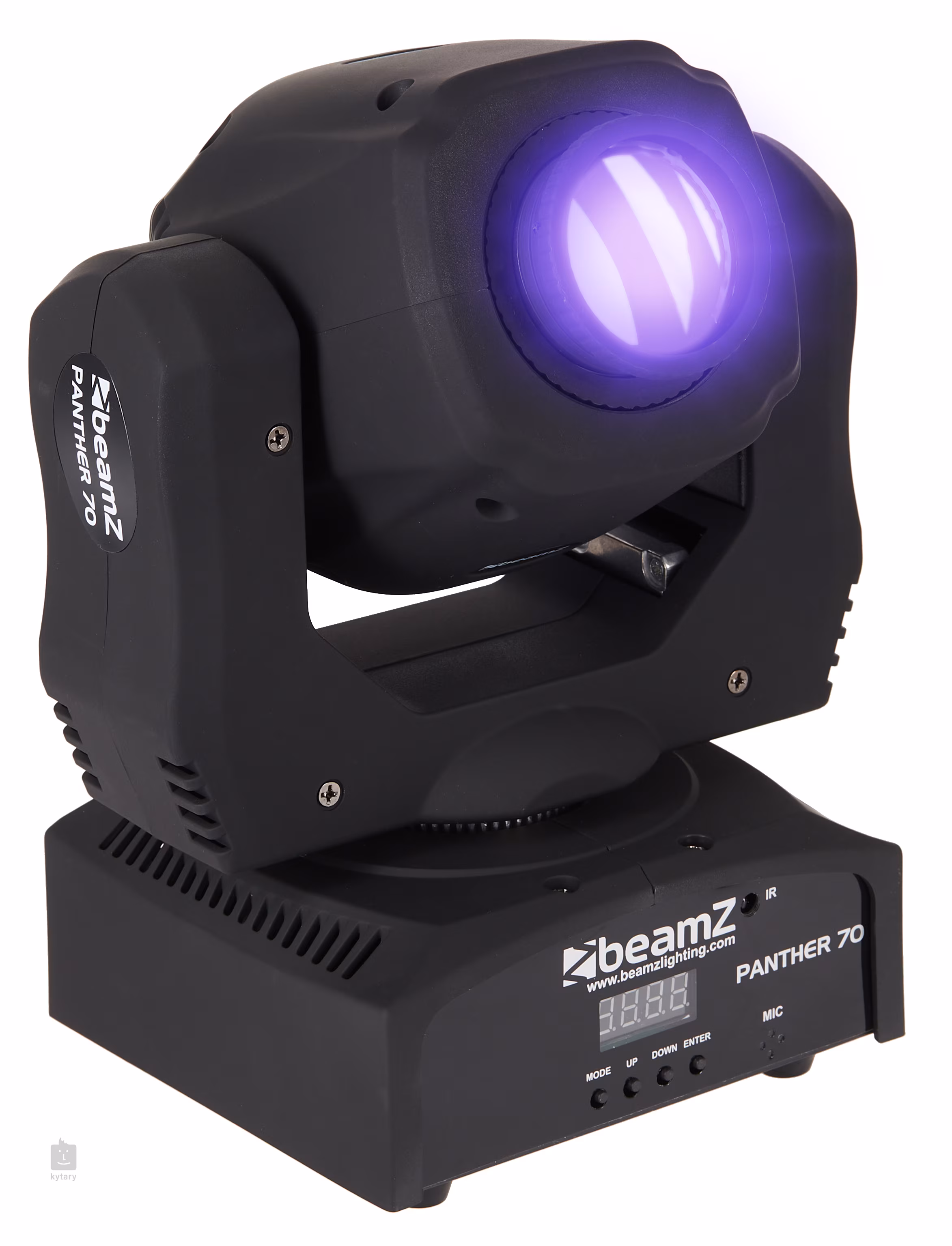 Rotačná hlava Panther 70 od BeamZ je kompaktné a cenovo dostupné svietidlo, ktoré vďaka svojim malým rozmerom a nízkej hmotnosti (160 x 200 x 290 mm, 3,2 kg) je vhodné pre cestujúcich DJ-ov, kapely, bary a malé kluby. Je vybavený bielou LED diódou s dlhou životnosťou a výkonom 70 W s uhlom vyžarovania 10°. K dispozícii je manuálne zaostrovanie pre ostrý lúč a lineárny stmievač (0-100 %).