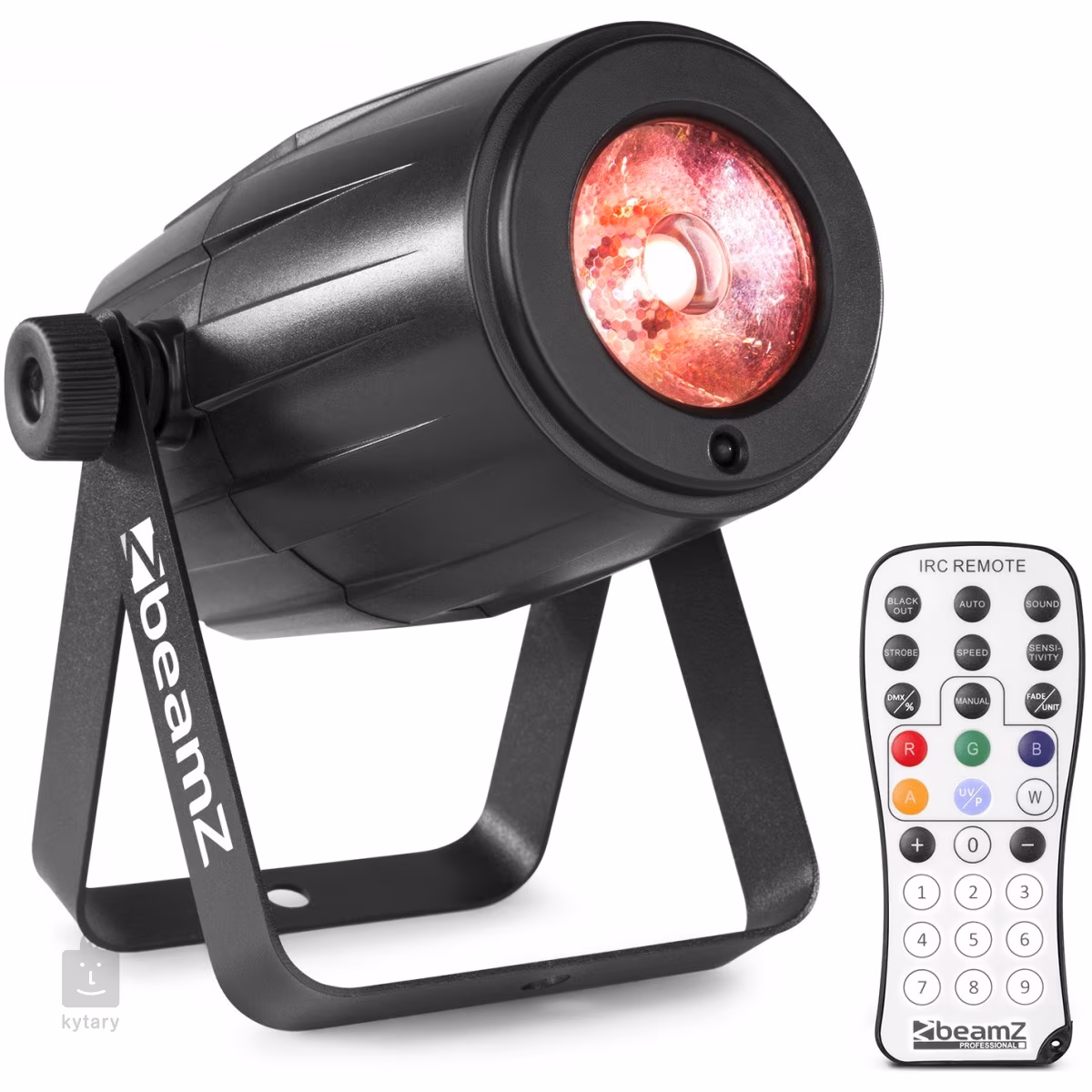 PS12W LED Spot 12W od spoločnosti beamZ je veľmi kompaktný reflektor s jednou 12W LED diódou, ktorý ponúka pestrú paletu farieb RGBW. Zároveň využíva všetky výhody technológie LED, ako je úspora energie, nízka produkcia tepla a dlhá životnosť. Svetlo má ostrý uhol vyžarovania 5°, vďaka čomu je ideálne na osvetlenie zrkadlových gulí a iných podobných efektov. Má základné krytie IP20, takže je vhodné len na použitie v interiéri. Ovládanie je možné pomocou dodávaného infračerveného diaľkového ovládača, automatických programov alebo programov ovládaných zvukom. Súčasťou je stroboskopický efekt.