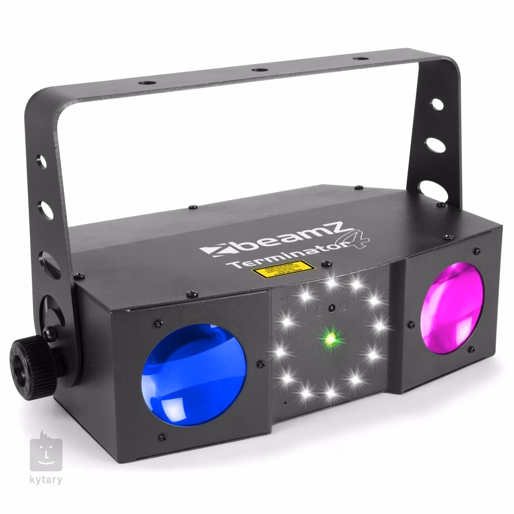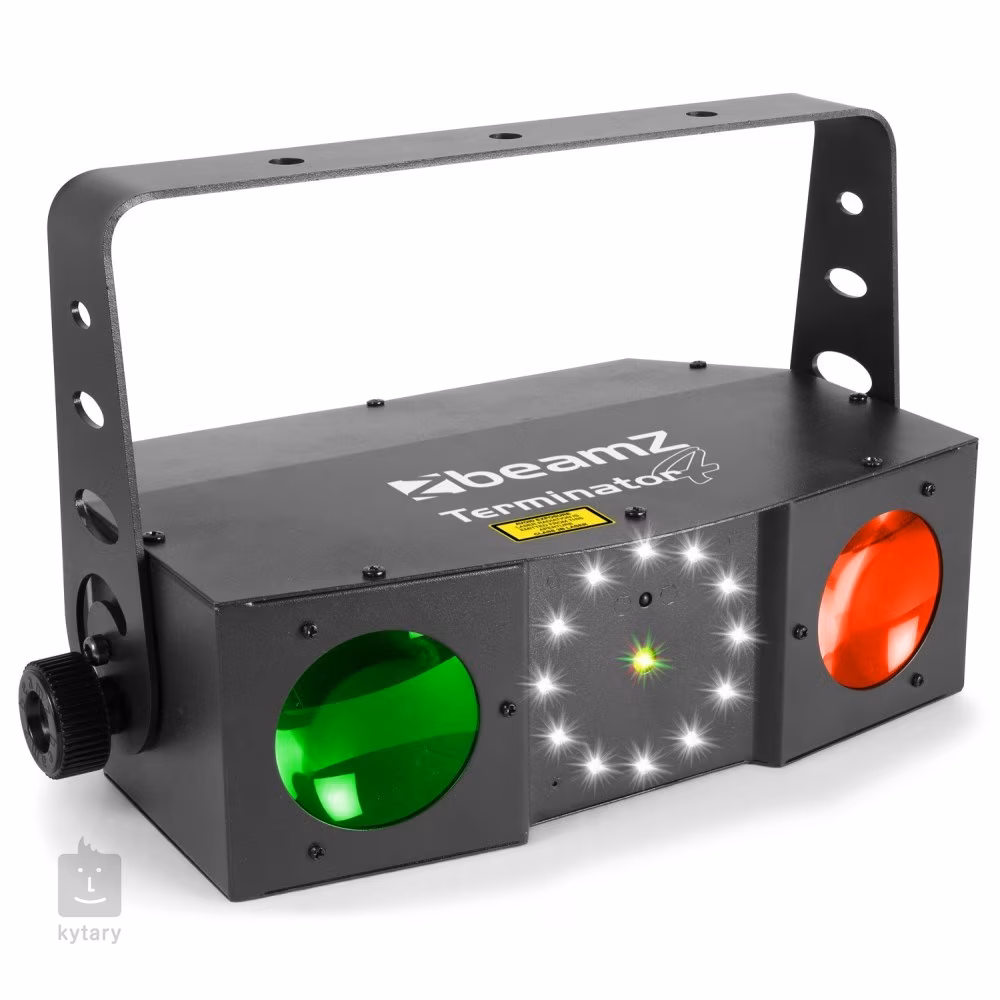 LED efektTerminator IV od spoločnosti BeamZ vám ponúka 3 špeciálne efekty v jednom prenosnom zariadení - dvojitý reflektor, dvojfarebný laser a stroboskop. Zariadenie je vybavené dvoma šošovkami s efektom lúča, ktoré produkujú svetlo z celkovo 66 5 mm LED diód v červenej, zelenej, modrej a bielej farbe. K dispozícii sú aj dva lasery, červený s výkonom 150 mW a vlnovou dĺžkou 650 nm a zelený s výkonom 50 mW a vlnovou dĺžkou 532 nm. Stroboskopický efekt zabezpečuje dvanásť bielych LED s výkonom 1 W. Všetky tri efekty možno samozrejme kombinovať, takže tanečný parket môžete mať osvetlený laserom, stroboskopickým efektom a rotujúcimi farebnými lúčmi súčasne.