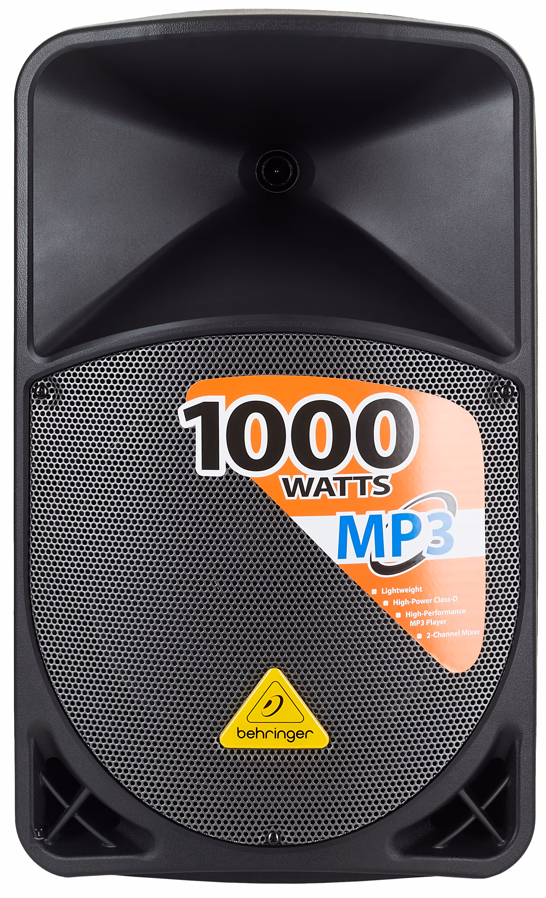V robustnej konštrukcii modelu B112MP3 sa nachádzajú 12" woofery a 1" tweetery, ktoré spolu so zosilňovačom triedy D poskytujú maximálny výkon až 1 000 W. Hlavný panel je vybavený dvojpásmovým ekvalizérom, gombíkmi na nastavenie hlasitosti, vstupom pre bezdrôtové systémy Behringer a integrovaným MP3 prehrávačom s prehľadným displejom a ovládacím panelom. Nájdete tu aj dva kombinované vstupy pre mikrofón alebo hudobný nástroj, port USB pre flash disk a výstup XLR na pripojenie k inému PA systému. Reproduktor môžete umiestniť na podlahu alebo ho pripevniť na stojan, potom sa dvojica robustných držadiel postará o pohodlnú a bezpečnú prepravu medzi produkciami.