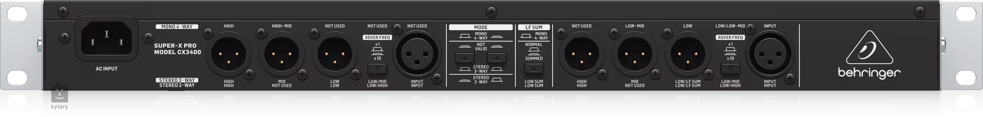 Behringer CX3400 je profesionálny aktívny crossover, ktorý ponúka tri režimy prevádzky: stereo 2-pásmový, stereo 3-pásmový a mono 4-pásmový. Vďaka pokročilým Linkwitz-Rileyovým filtrom so strmosťou 24 dB/oktávu poskytuje presné oddelenie frekvenčného spektra a nulový fázový posun, čím zabezpečuje maximálnu kvalitu zvuku aj v zložitých zvukových systémoch.