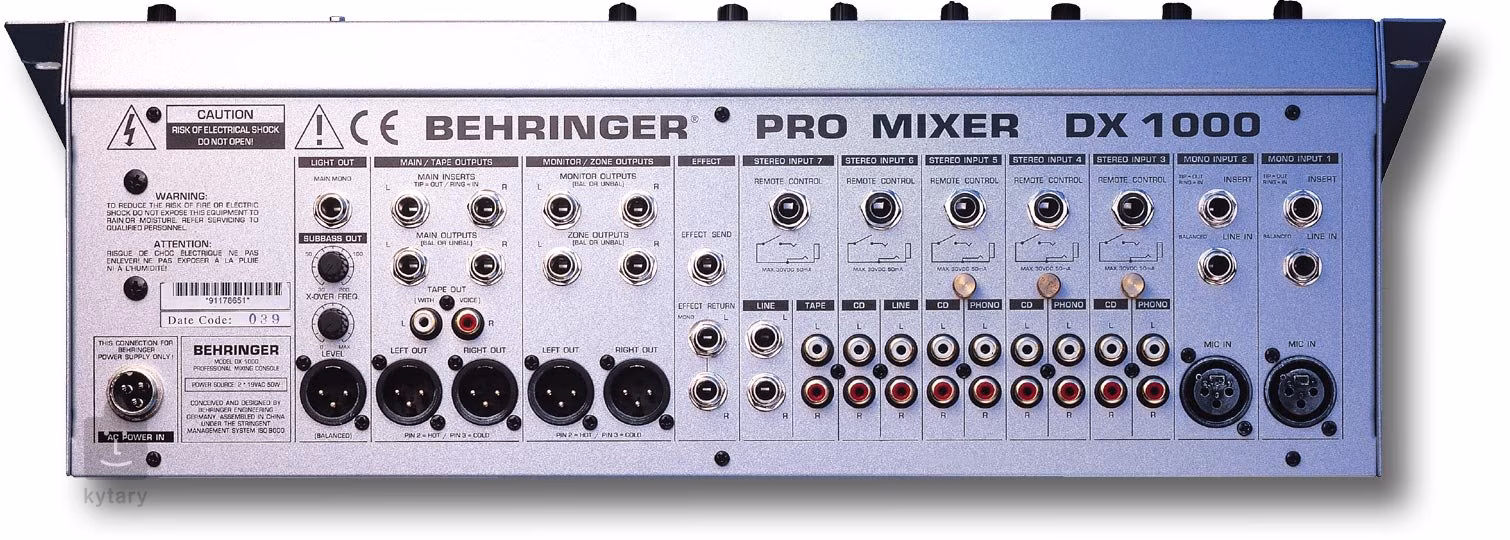 The Behringer DX1000 backs your pro-level commitment, down to the smallest detail. This creative instrument with its ultra-DJ-friendly user interface guides you through the most essential functions and monitors each option you select with its status LEDs. Indispensable ingredients such as the PFL function, which is monitored visually together with the main output signal by a 12-segment LED VU meter, the talk-over function and the subbass output are just a few of the DX1000's many special features, offering both you and your audience a sound experience undreamed-of before.