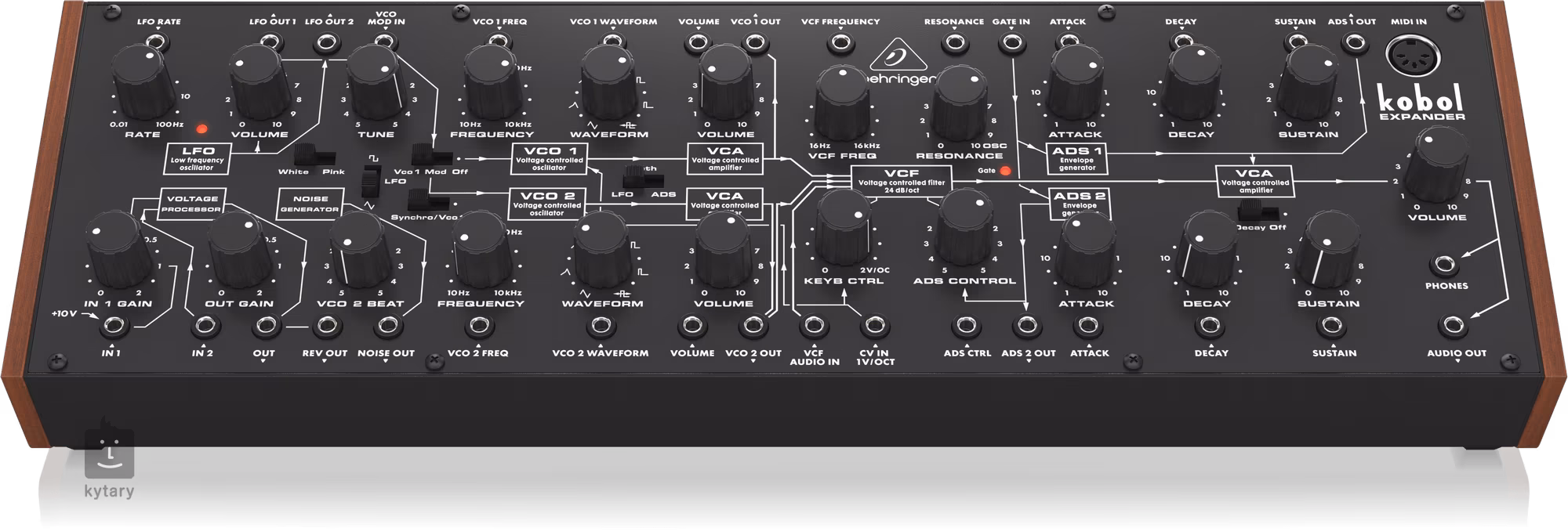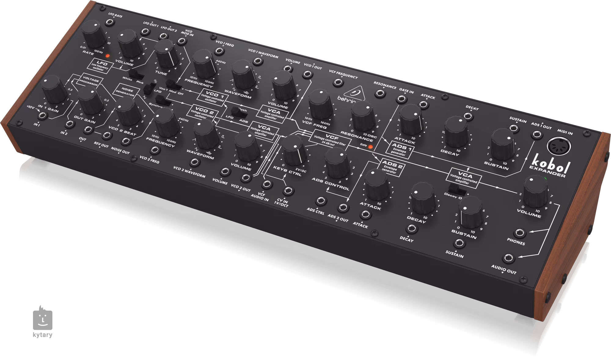 Behringer Kobol Expander je analógový semi-modulárny syntetizátor s 2 VCO, 7 variabilnými priebehmi a jedinečným "Kobol" VCF, všetko vo formáte Eurorack.