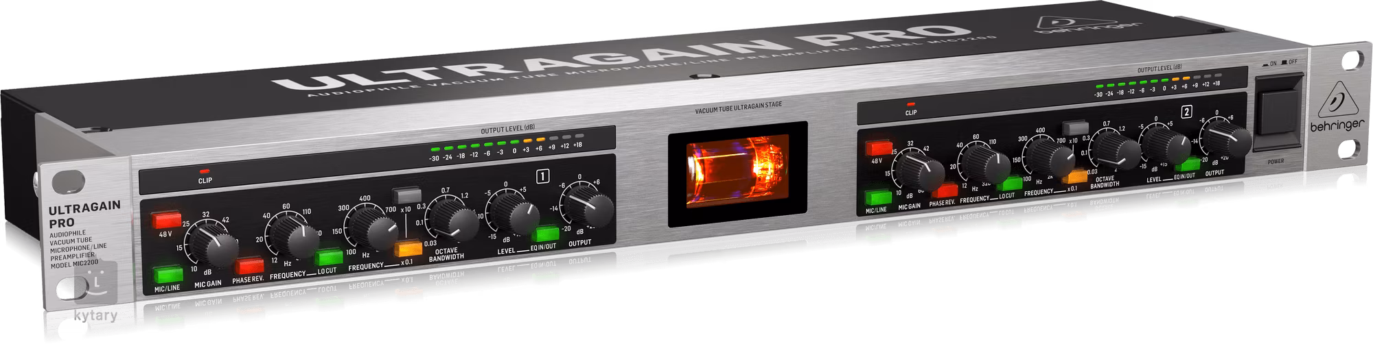 Lampy dokážu obohatiť signál o harmonické frekvencie, čím mu dodajú hĺbku a charakter. Hoci túto technológiu nahradili tranzistory, mnohí hudobníci sa zhodujú, že elektrónky poskytujú oveľa lepší zvuk. Dvojkanálový mikrofónový/linkový predzosilňovač ULTRAGAIN PRO MIC2200 s ručne vybranými lampami 12AX7 dodáva mikrofónom, akustickým alebo basovým gitarám vintage lampový charakter. Signálovú cestu dopĺňajú plne parametrické dvojpásmové EQ, ktoré pomáhajú formovať zvuk nástrojov a vokálov s maximálnou presnosťou a muzikálnosťou.