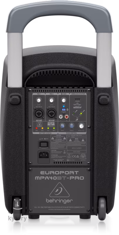 MPA40BT-PRO je jedinečný PA systém typu All-In-One vhodný pre všetkých živých účinkujúcich a organizátorov podujatí, narodeninových osláv alebo konferencií. Vnútri odolnej konštrukcie sa nachádza dvojkanálový mix, vstup pre bezdrôtové systémy Behringer, integrovaná nabíjateľná batéria s výdržou až 12 hodín a pripojenie Bluetooth na bezdrôtové pripojenie externých zariadení. K dispozícii je aj indikátor stavu nabitia batérie, dvojpásmový ekvalizér a ovládanie celkovej hlasitosti. 8" woofer a 1" tweeter spolu so zosilňovačom triedy D vytvárajú maximálny výkon až 40 W.
