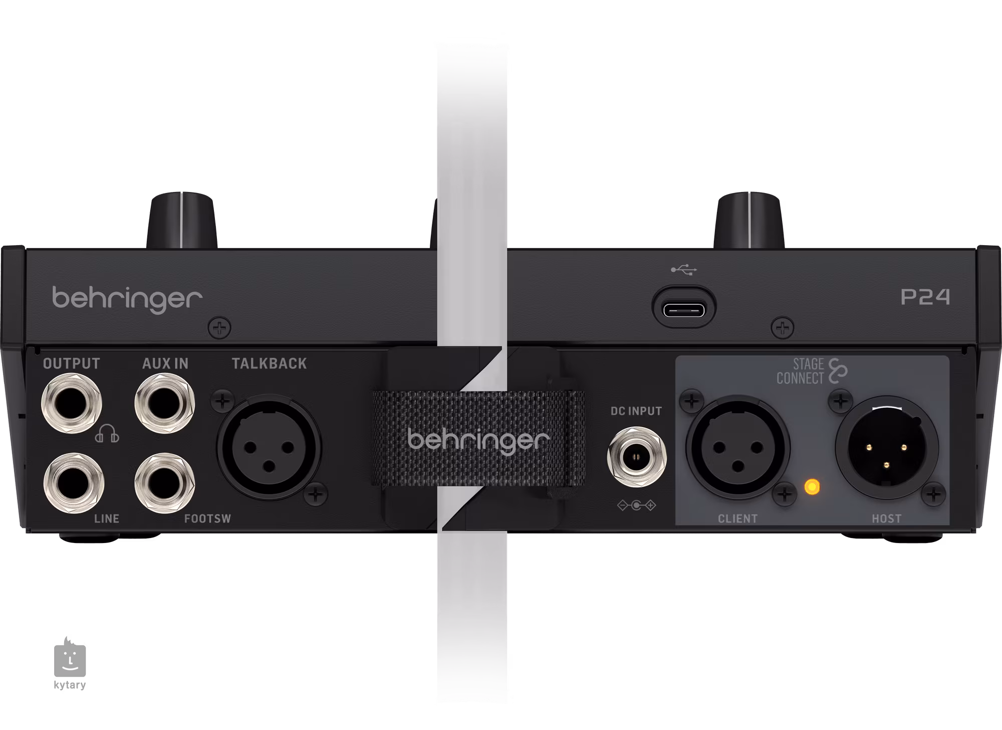 Behringer P24 je osobný monitorovací mixážny pult série StageConnect s 13 stereo kanálmi a 60 mm fadermi.