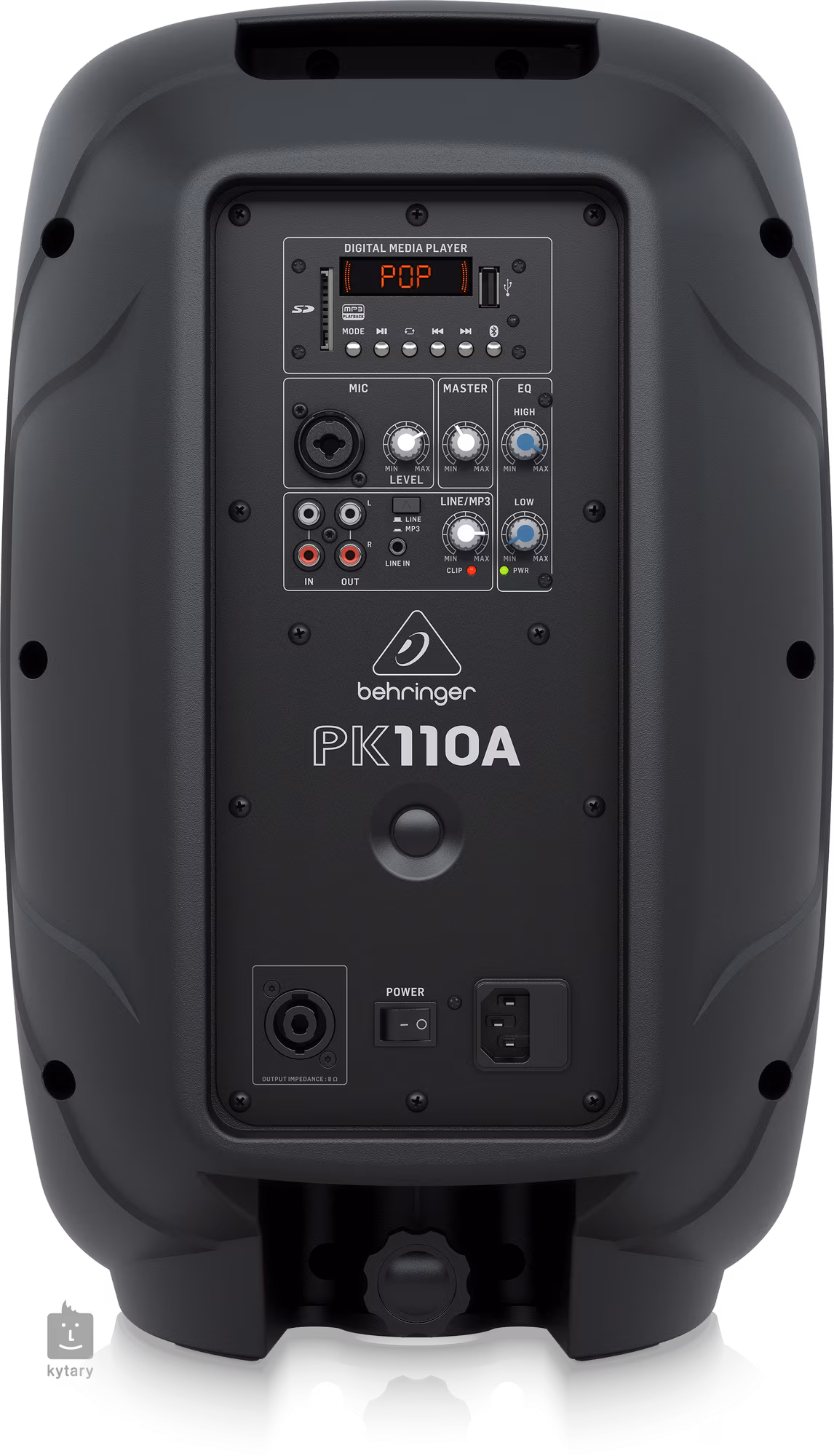 Behringer PK110A je 350W aktívny dvojpásmový PA reproduktor so zabudovaným prehrávačom médií, prijímačom Bluetooth a integrovaným mixážnym pultom.